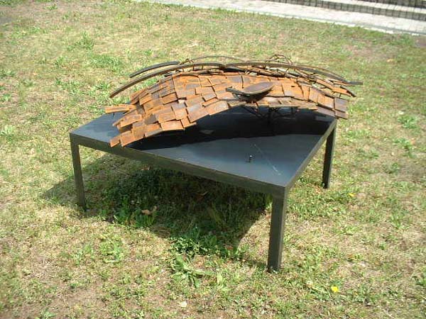 4伊藤 タダオ「ハウス」セラミック・木・鉄パイプ 230x50x300