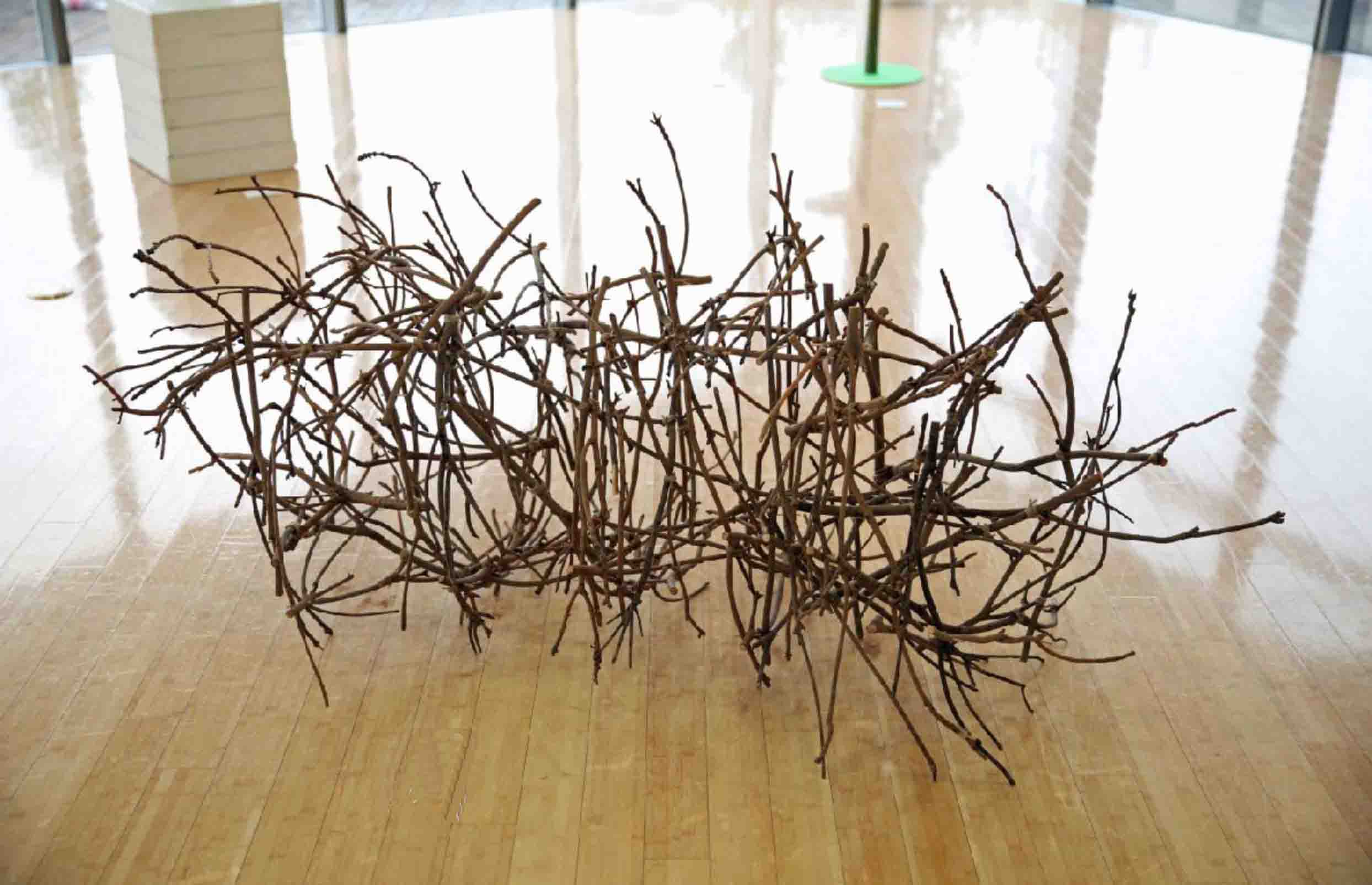 | 39 | 山﨑 美樹 | エダ・ぐるぐる | 小枝 | 枝をぐるぐると繋げていきました。庭に置いてあるうちにアゲハの幼虫がやってきて、枝でさなぎになりました。いつ羽化するかしら? |  |
