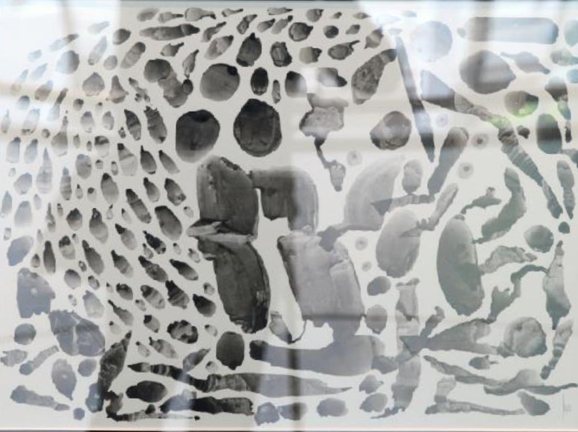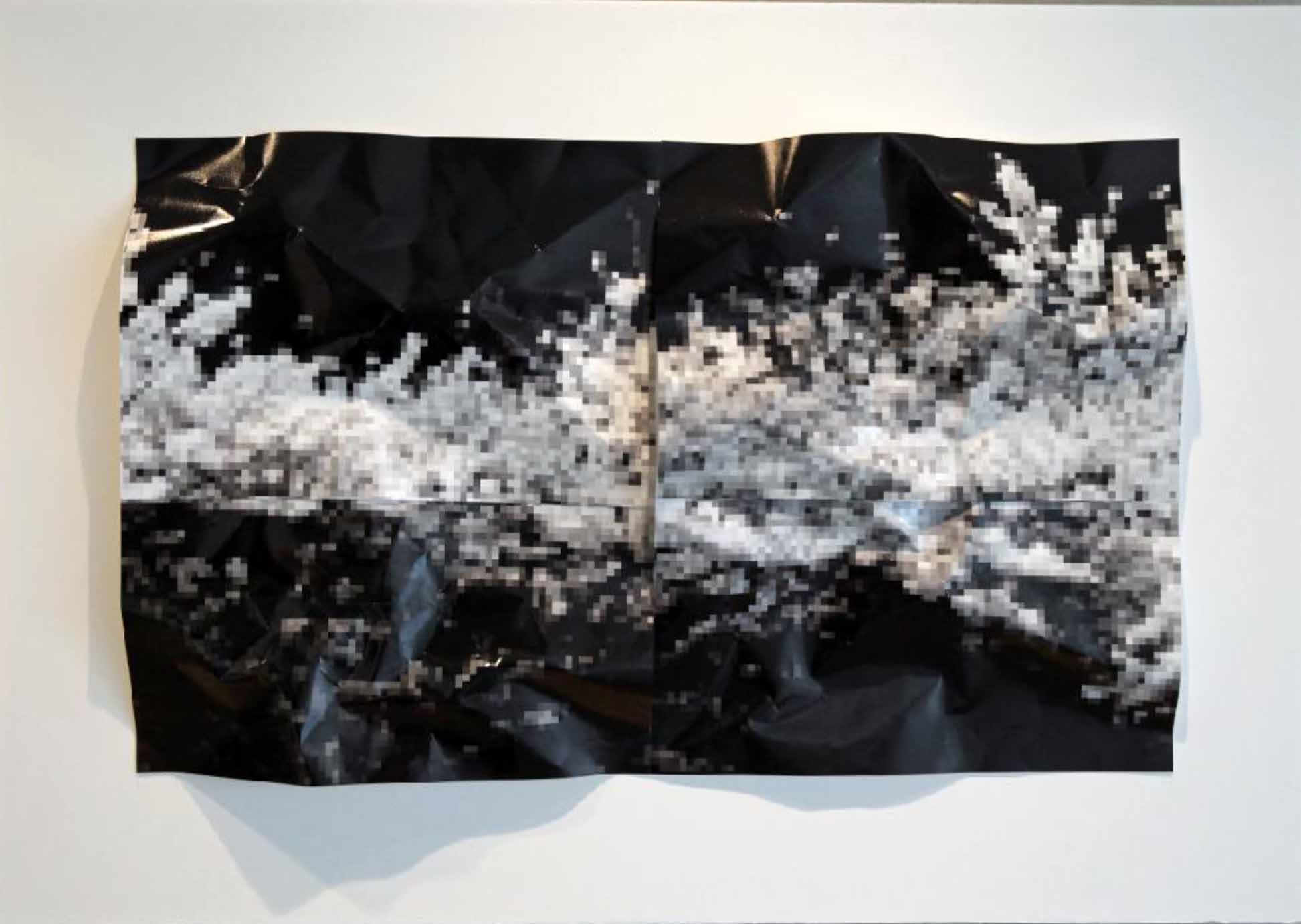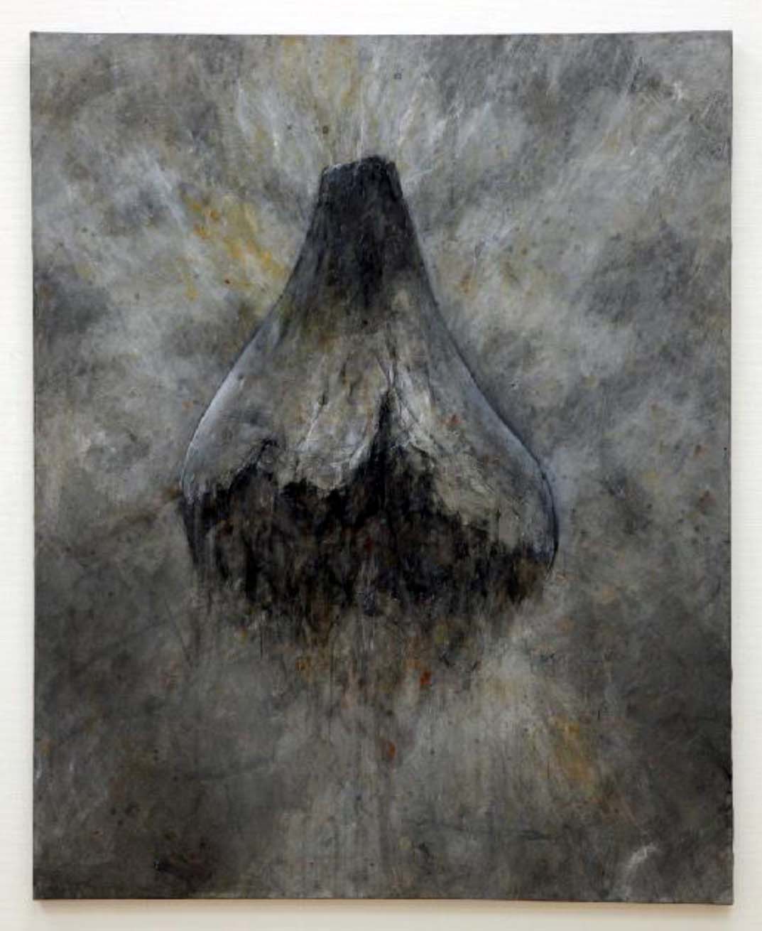 | 42 | 横溝 泰鴻 | 湧気Ⅴ | 紙、墨、土 | 堆積された土や石は積み重なるにつれ力が加わり、熱を持ったりし、姿、形を変えていく。人の意識もそのように何かの力で変化していくのだろう。どこの地層から湧き出てきた作品なのか自分でもわからない。 |  |
