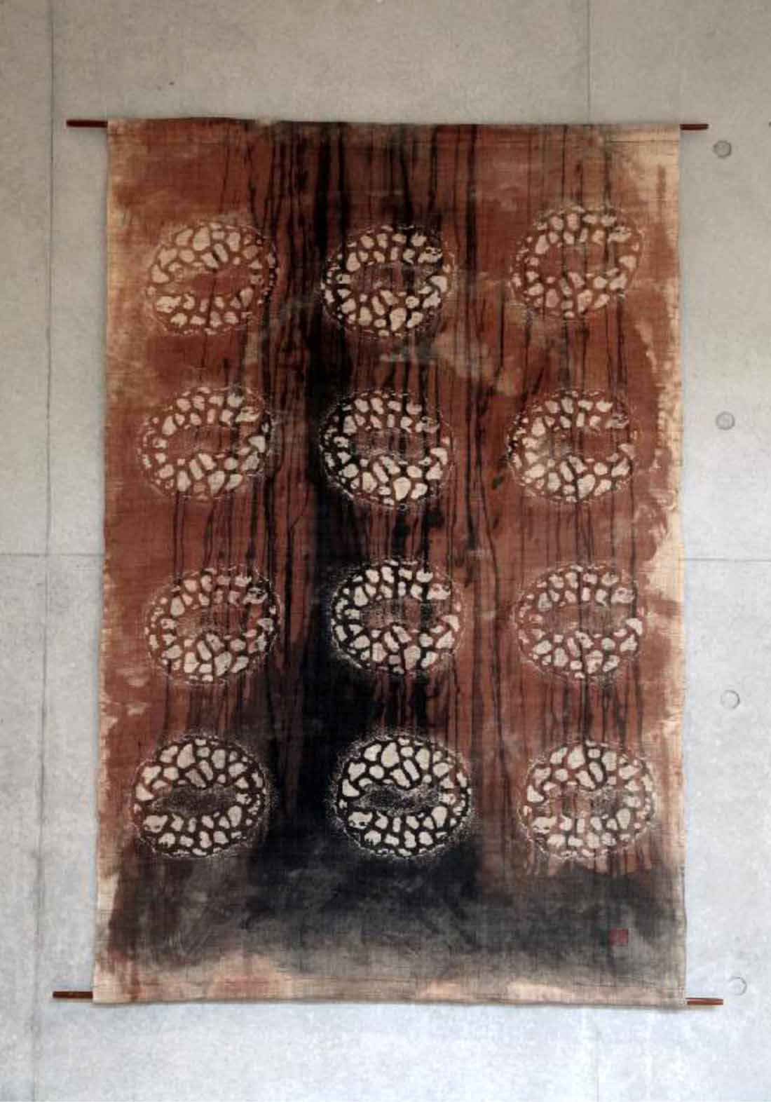 | 26 | 中山 由美 | 種子からのはじまり | 柿渋、布 | 最近、型絵染めの自由な表現に、一喜一憂しています。 |  |