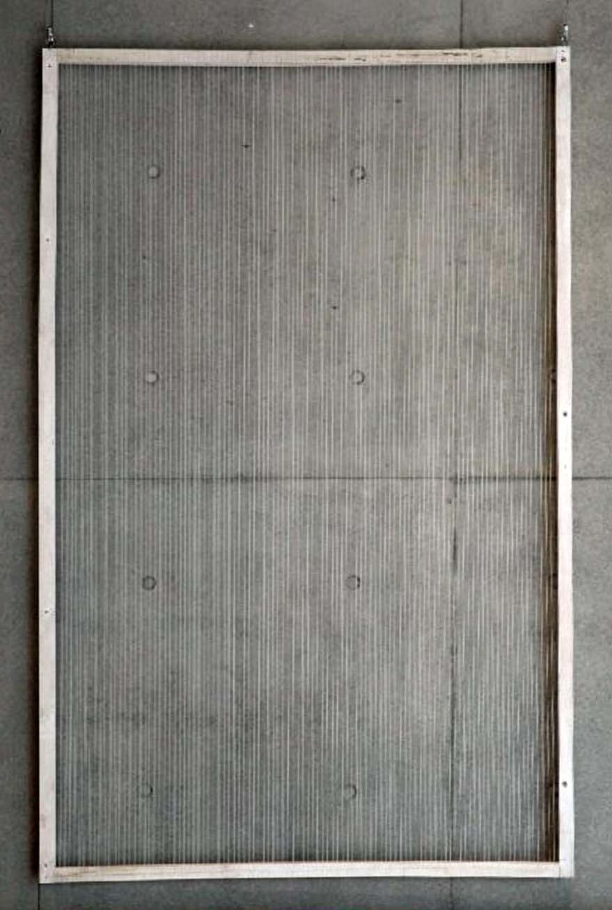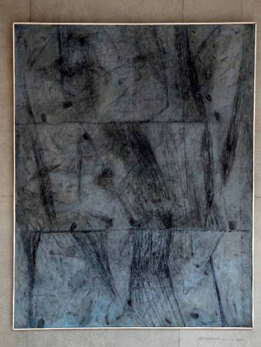 | 40 | 山田 實 | 黒い紐 | キャンバスに油絵具のみ | 社会はいろいろな繋がりで出来ています、其の絡みを黒い紐の造形で表現しました、あまり文学的方向には行きたくは有りません。 |  |