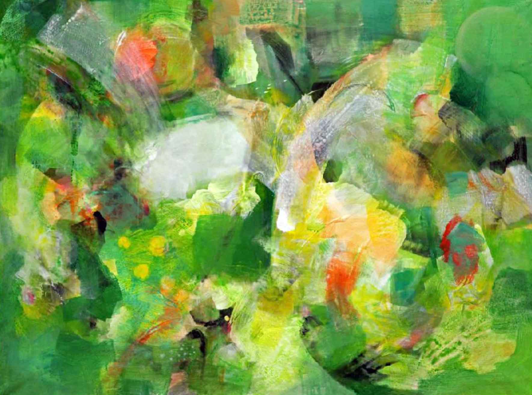 | 29 | 原田 光代 | 生の予感 | アクリル、墨 | 南風の中でときめく。何かが生まれ、満ちる予感。変幻自在な南の生。 |  |