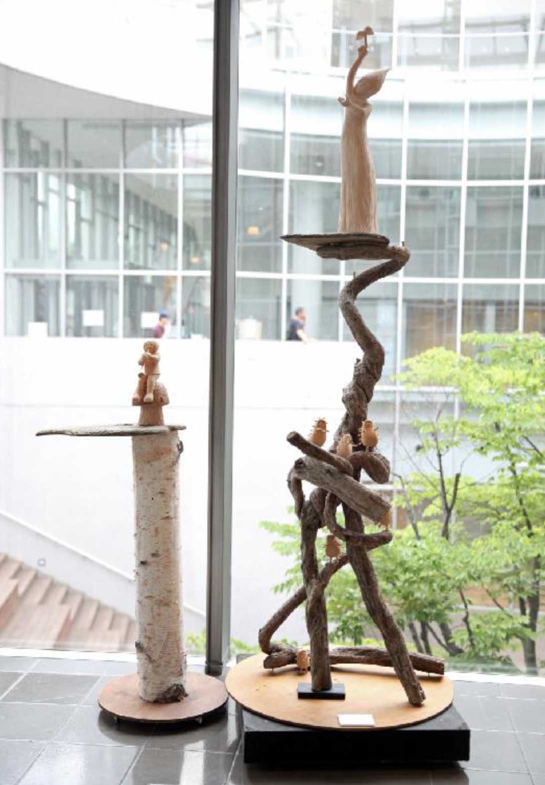 | 37 | 山上 真智子 | 森のしずく | 石塑粘土 木 その他 | 長い長い年月、生きてきた木々がよりそう森。雨が土にしみこみ、甘い液体に変える木の魔法。その恵みを受けて生きる、小さな命たち。 |  |