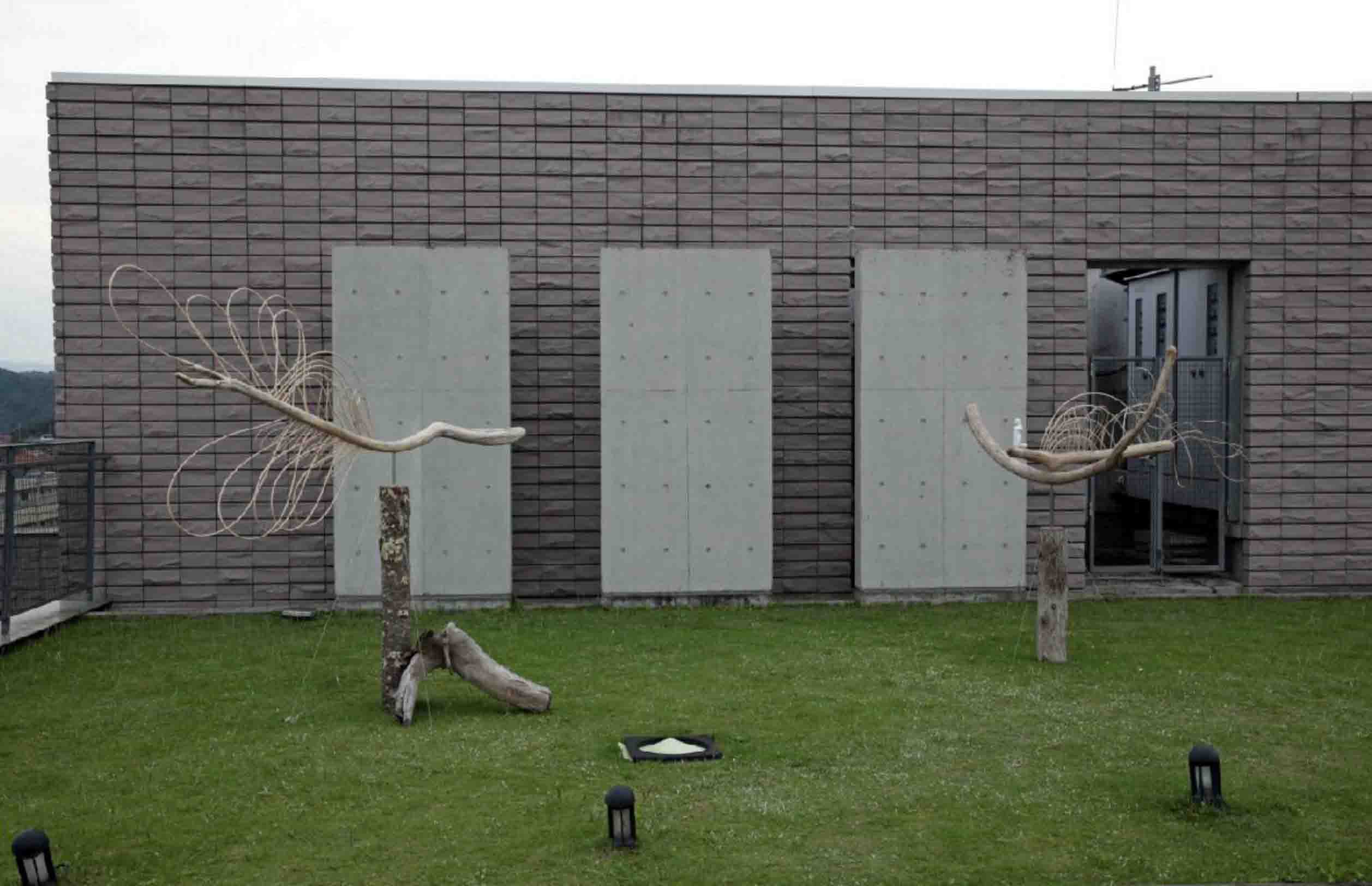 18鈴木 斉 ヒラキヒミ Ⅱ ~自然の声に耳を傾けよ~流木・ステンレス・樹木・やなぎ・粘土ひそかな自然に内包される 翡翠色の時 僅かな風の道にも 揺らぐ薄葉にも 心はざわめきたゆたう時を重ね合わせてゆだね祈る もうひとつの時間