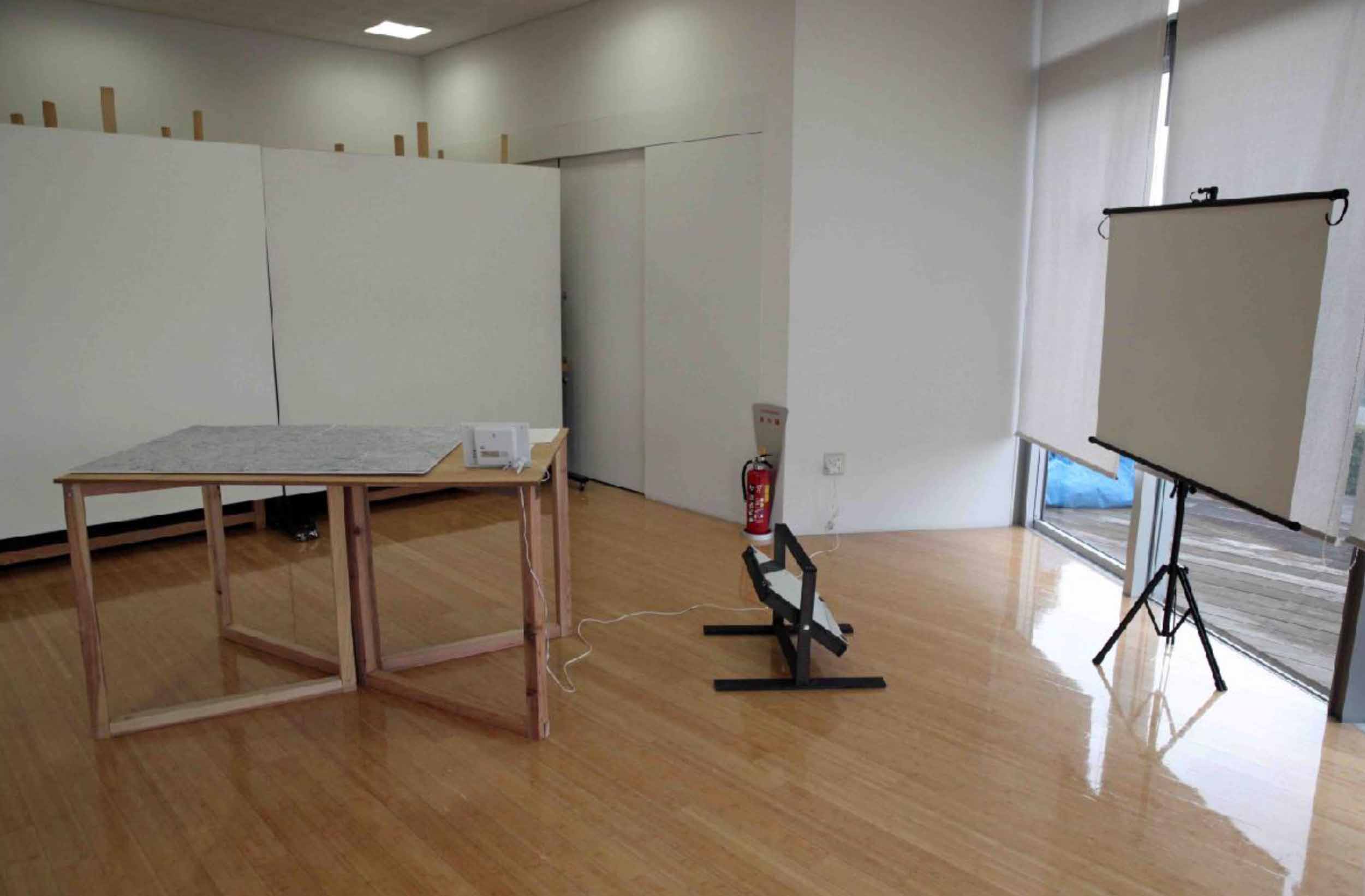 12小林 ナオコ標本-多摩川多摩川の砂利、水、LEDなど羽村の堰が見えるコンクリートの堤防の先端は傾斜していて、川に足をつけることができます。周りを水が勢いよく流れ、水の底には、どこからか流れ着いた石ころたち。