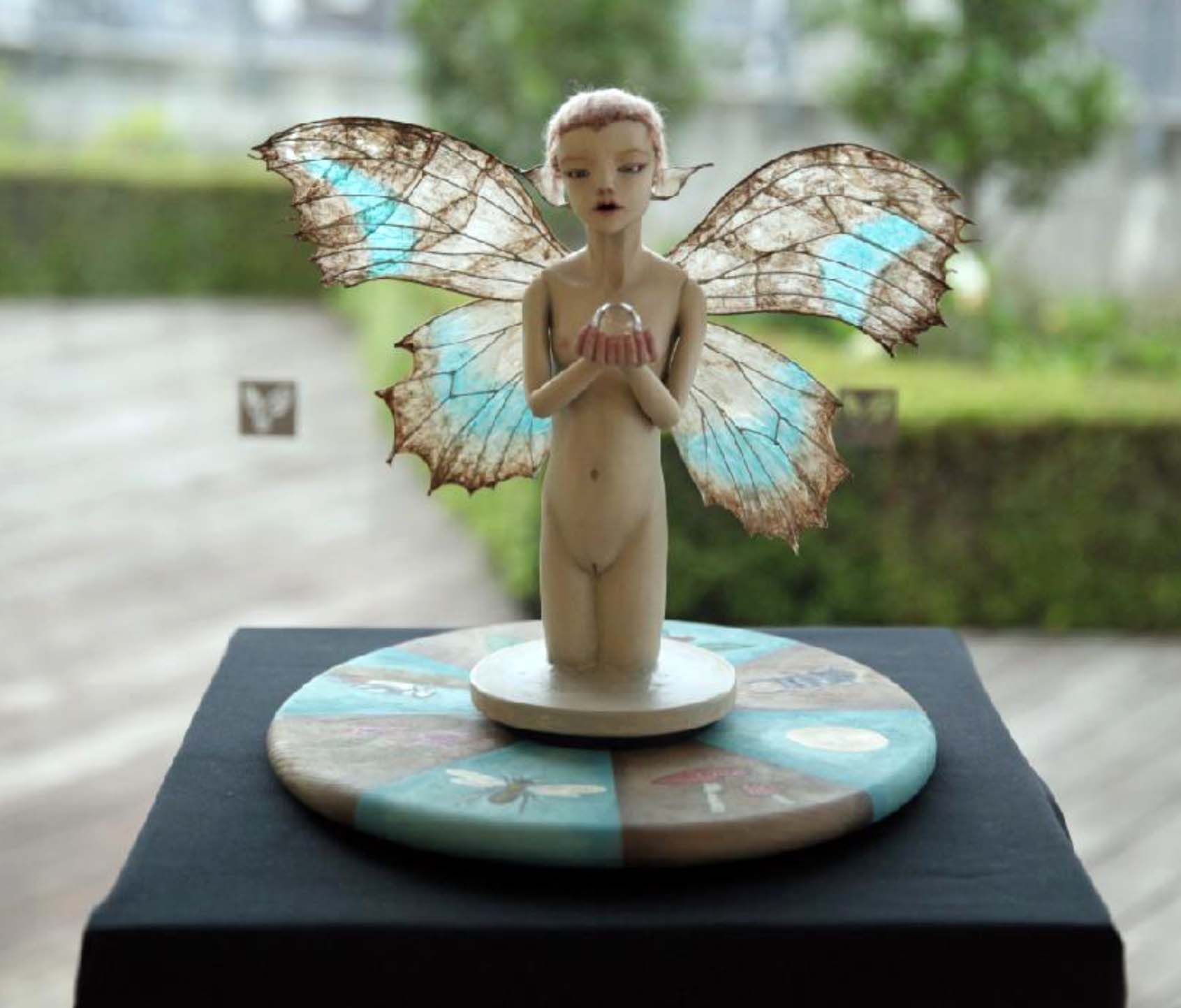 37山上 真智子森のしずく石塑粘土 木 その他長い長い年月、生きてきた木々がよりそう森。雨が土にしみこみ、甘い液体に変える木の魔法。その恵みを受けて生きる、小さな命たち。