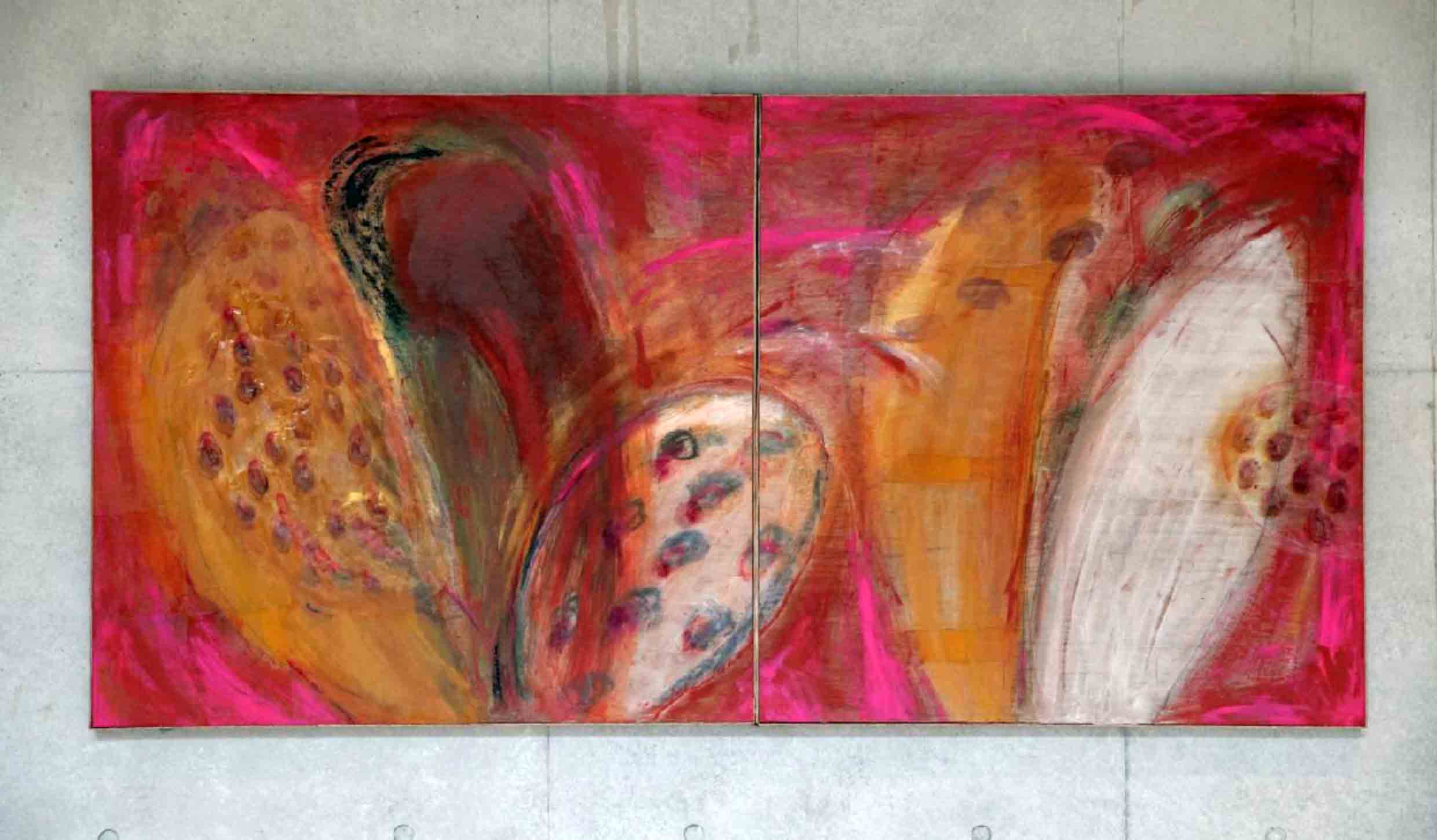 29原田 光代生の予感アクリル、墨南風の中でときめく。何かが生まれ、満ちる予感。変幻自在な南の生。