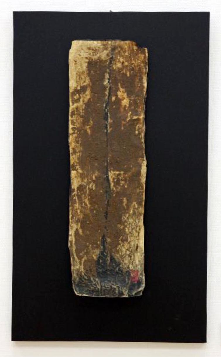 42横溝 泰鴻湧気Ⅴ紙、墨、土堆積された土や石は積み重なるにつれ力が加わり、熱を持ったりし、姿、形を変えていく。人の意識もそのように何かの力で変化していくのだろう。どこの地層から湧き出てきた作品なのか自分でもわからない。