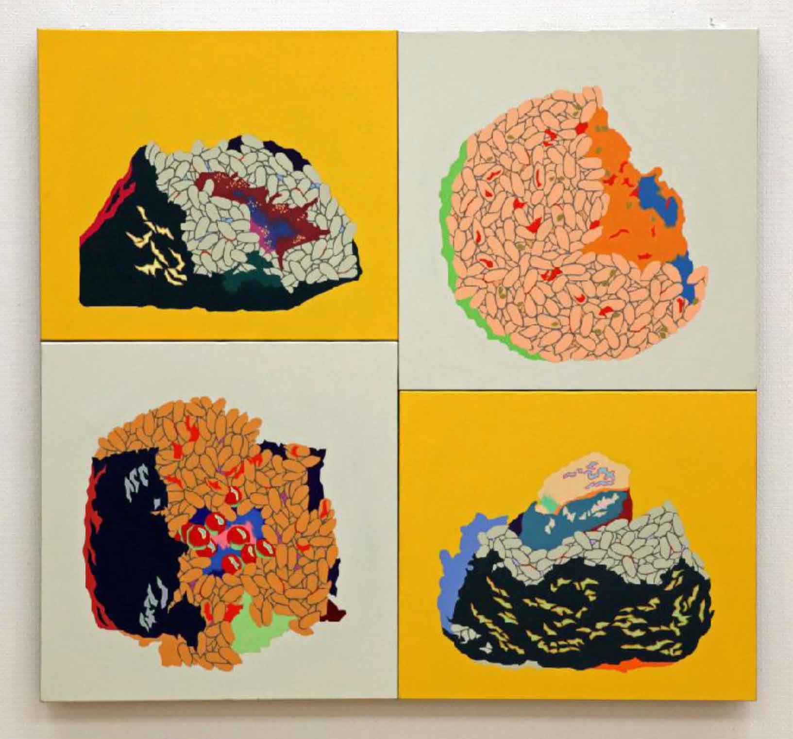34宮下 泉おにぎりリキテックス、キャンバス“おにぎりの祭典”多種多彩。大量生産されて均一の『おにぎり』達をみんなでパクパク、ウ~中味はなんだろう。。。