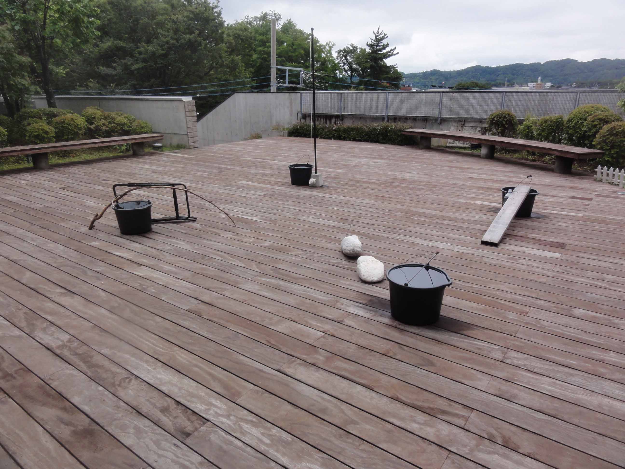 34内藤 晴久海を、バケツに・・・1、2、3、4バケツ、水、石、木、パイプ、貝、紐1 冬の熊野灘を描き祖父の病室に貼る。9歳 2 自殺者のでた日本海は鏡のように。20歳 3 ハワイでTV画像と太平洋が青く。37歳 4 九十九里浜で海と幾何学の閃きを。70歳