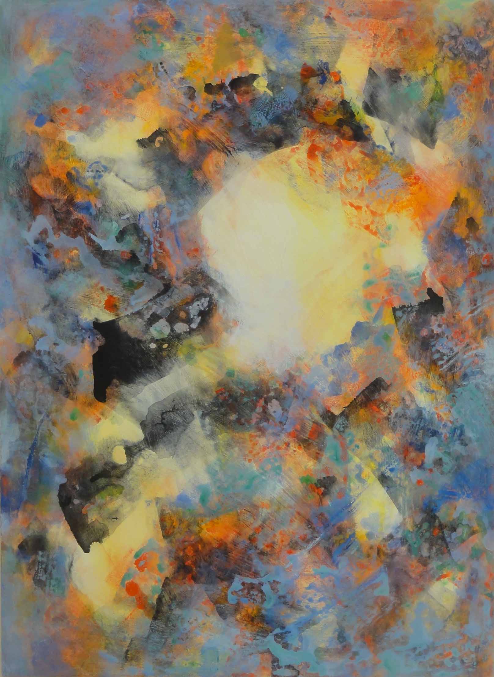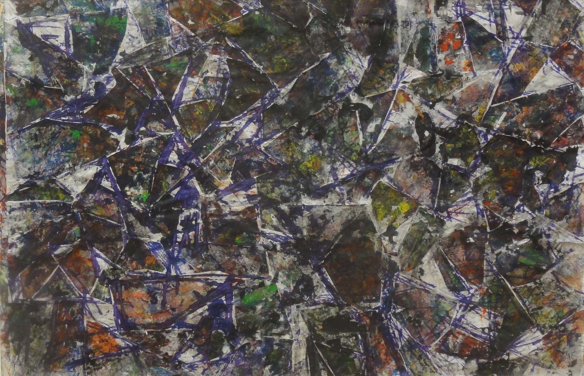 25高橋 忠義太陽パステル、水彩、画用紙四つの世界  自然界を四つに分けた抽象表現です