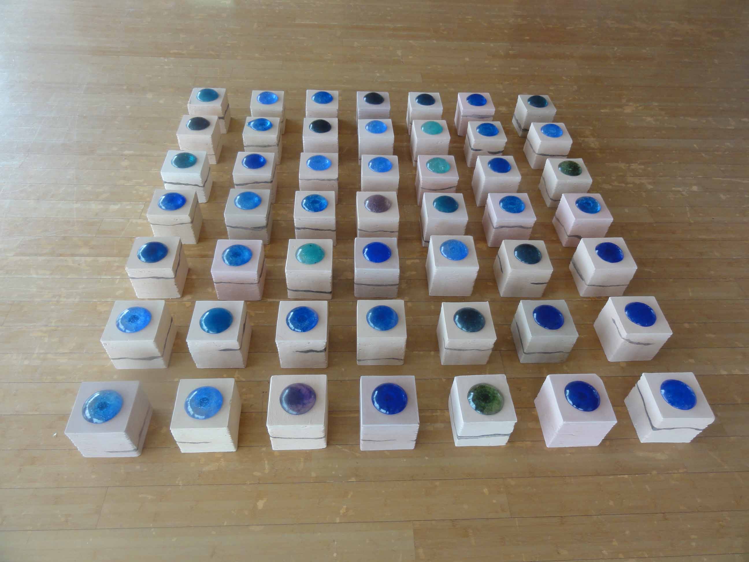 45堀本 俊樹単位 2019ガラス、テラコッタ、他前2回と同様な展示です。単位から全体へ、さらに大きなつながりに広げていく。