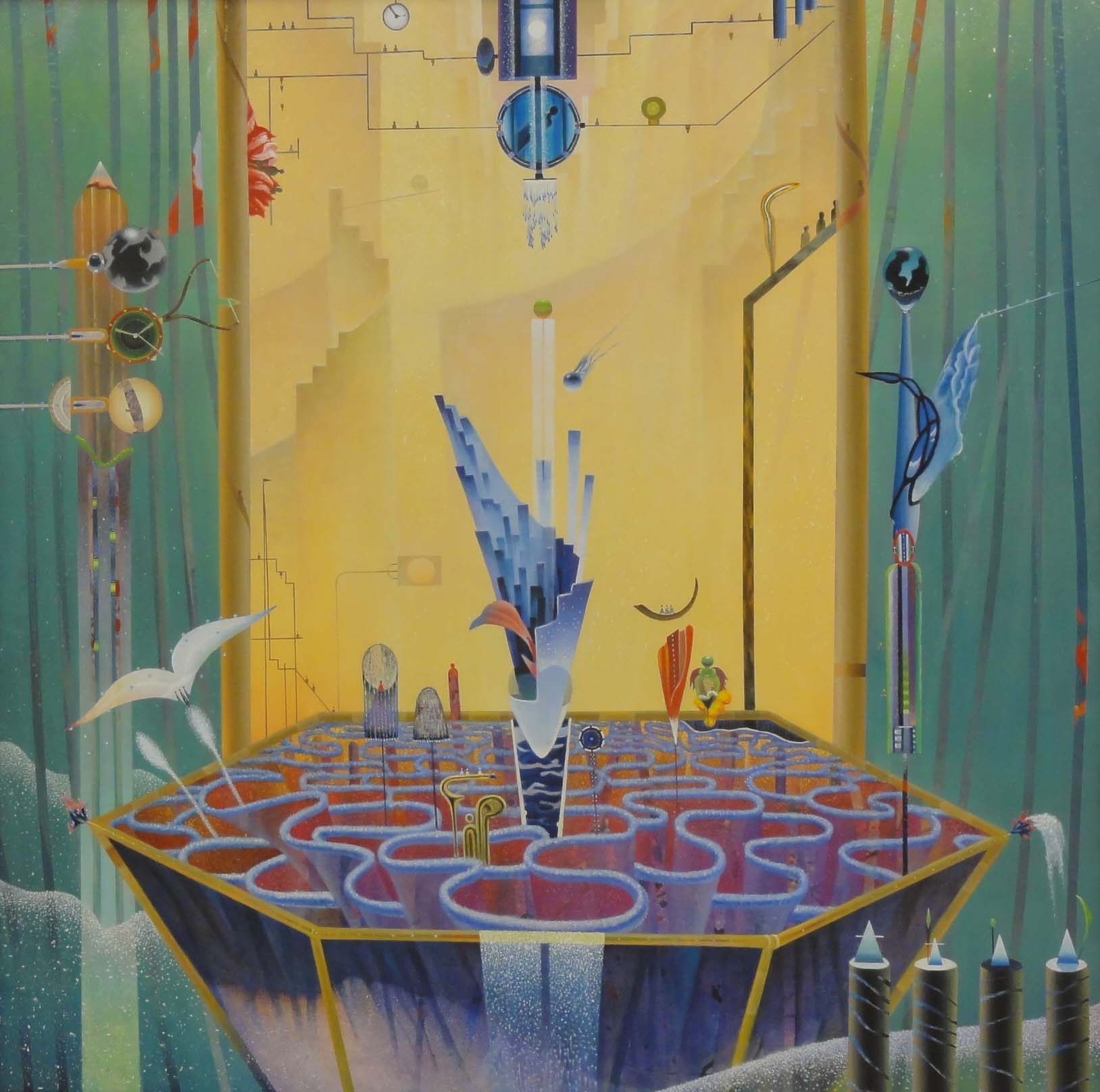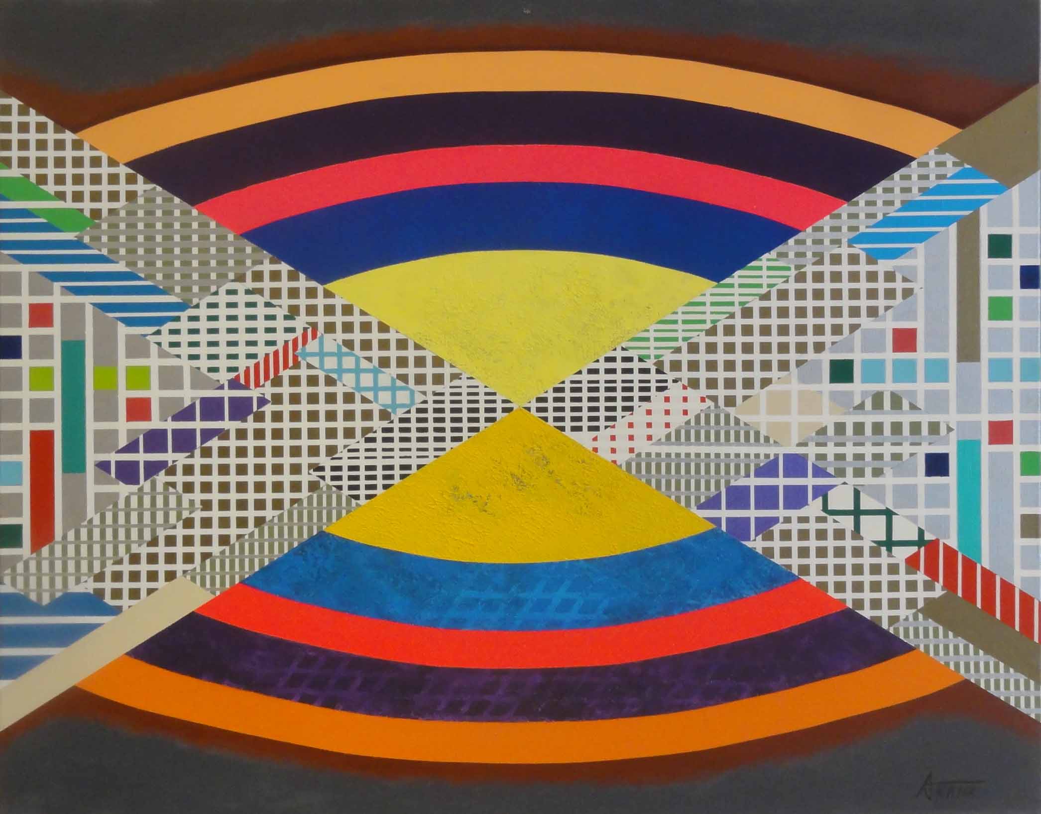 原色や発光色を使って現代社会における輝きを表現しています。令和の時代が始まりました。建設的で輝く生活空間をイメージして絵画作品にしてみました。