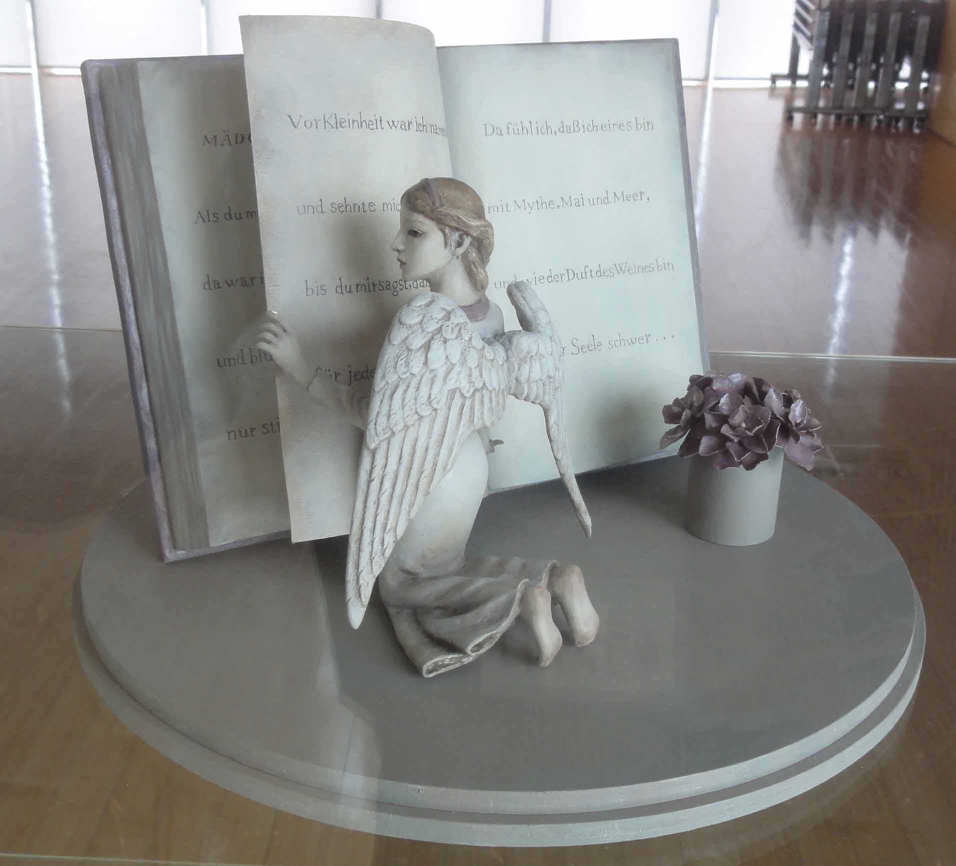 49山上 真智子物語の天使石塑粘土心に語りかける書物の中に遊ぶ、翼をもつ君。