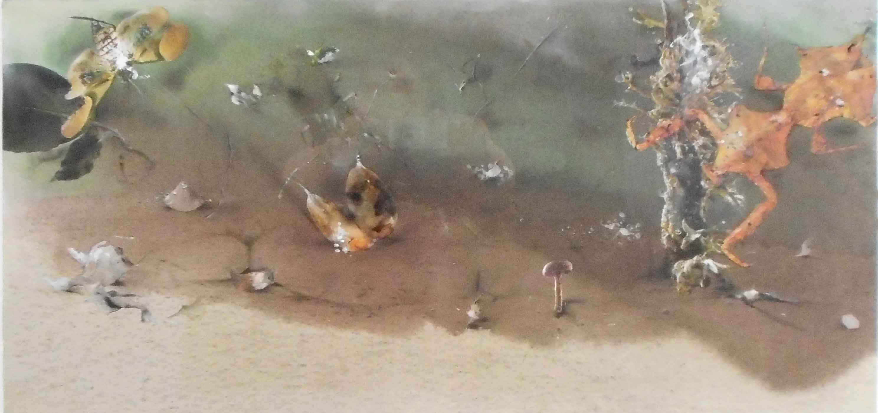 アクリルガッシュと油彩の混合技法で表現してみました。何かを探し考えたりしながらの日常にも、個性的でありたいなと描いています。