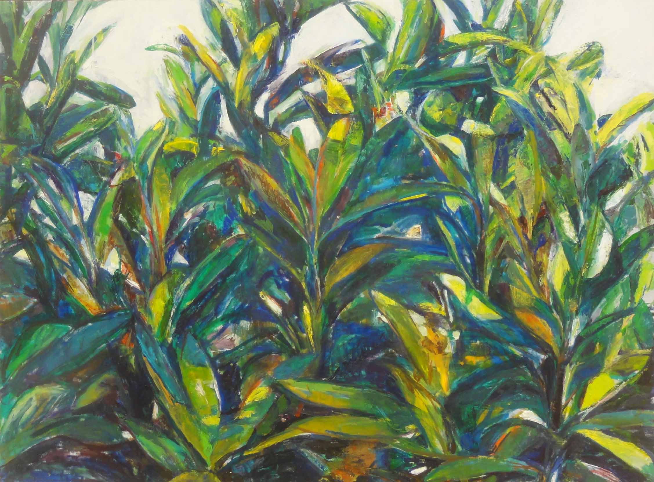 何も具体的なものは描いていません。色と形が重なり合うことで自然に絵が出来ていくのです。そこに作者のねらいや考えが入り込む余地はありません。