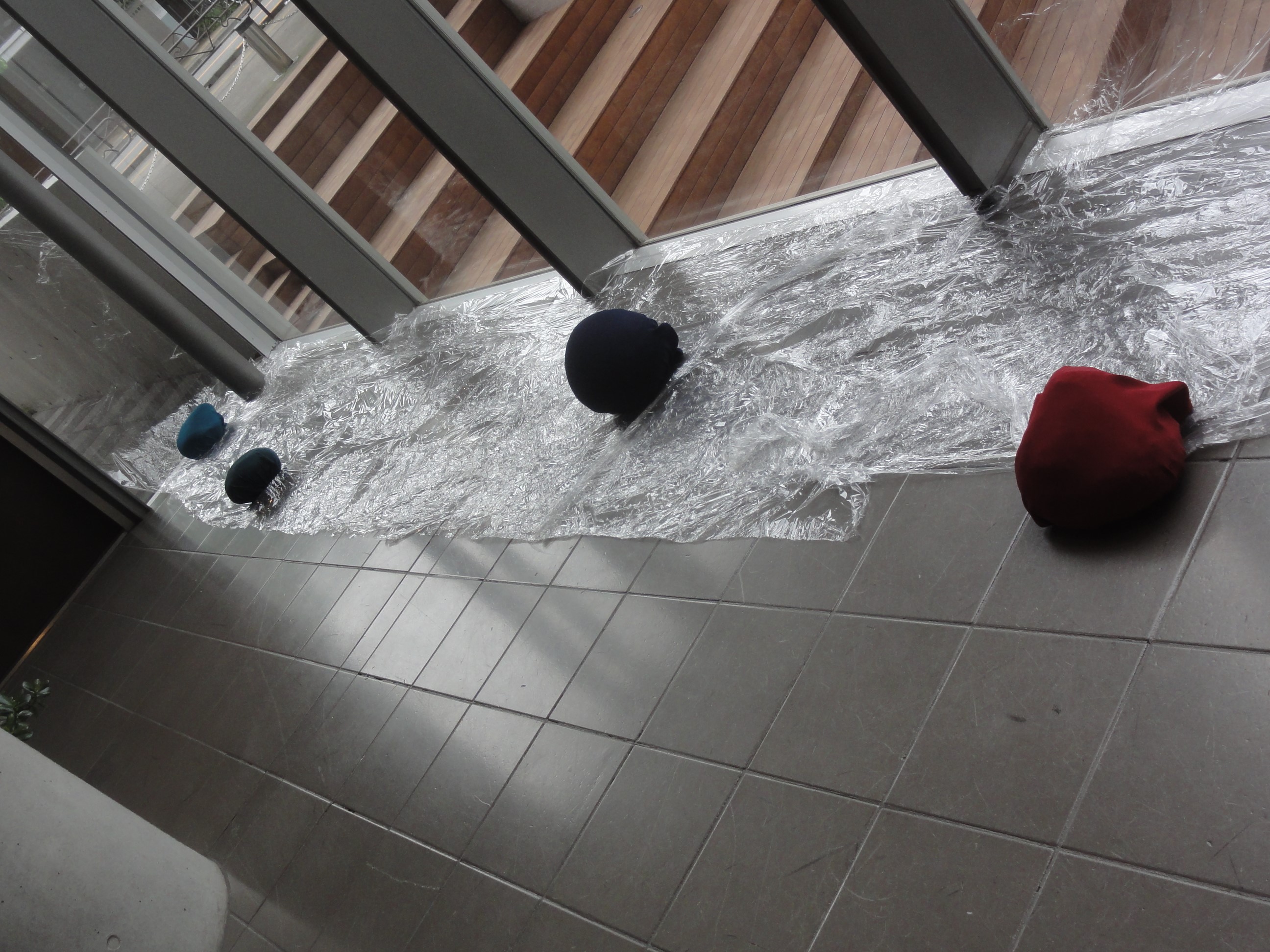 27竹内 博ラップ、石、布最近空を見て作品を考えることが多くなった。空は無限に広がる空間で、私のテーマの無にとても似ていると感じます。そして自分自身も無であろうと想像しています。
