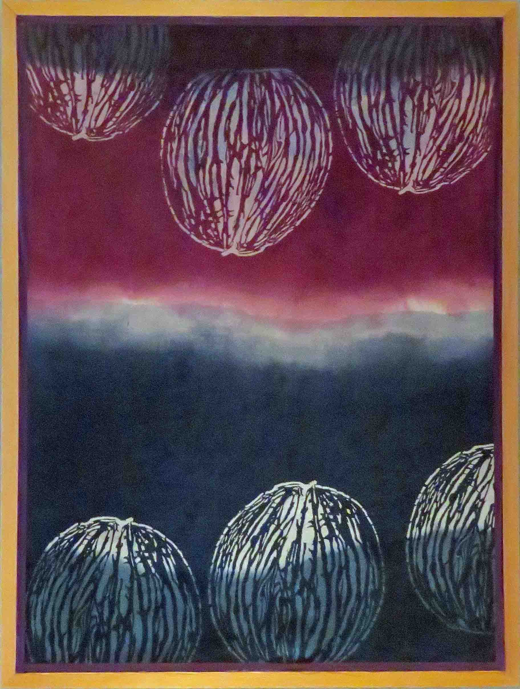 42中山 由美種子からのはじまりⅣシリアス染料、浸染用防染糊種子『三フクラギ』のフォルムが私には癒しになり、染めています。平和を願っ!!