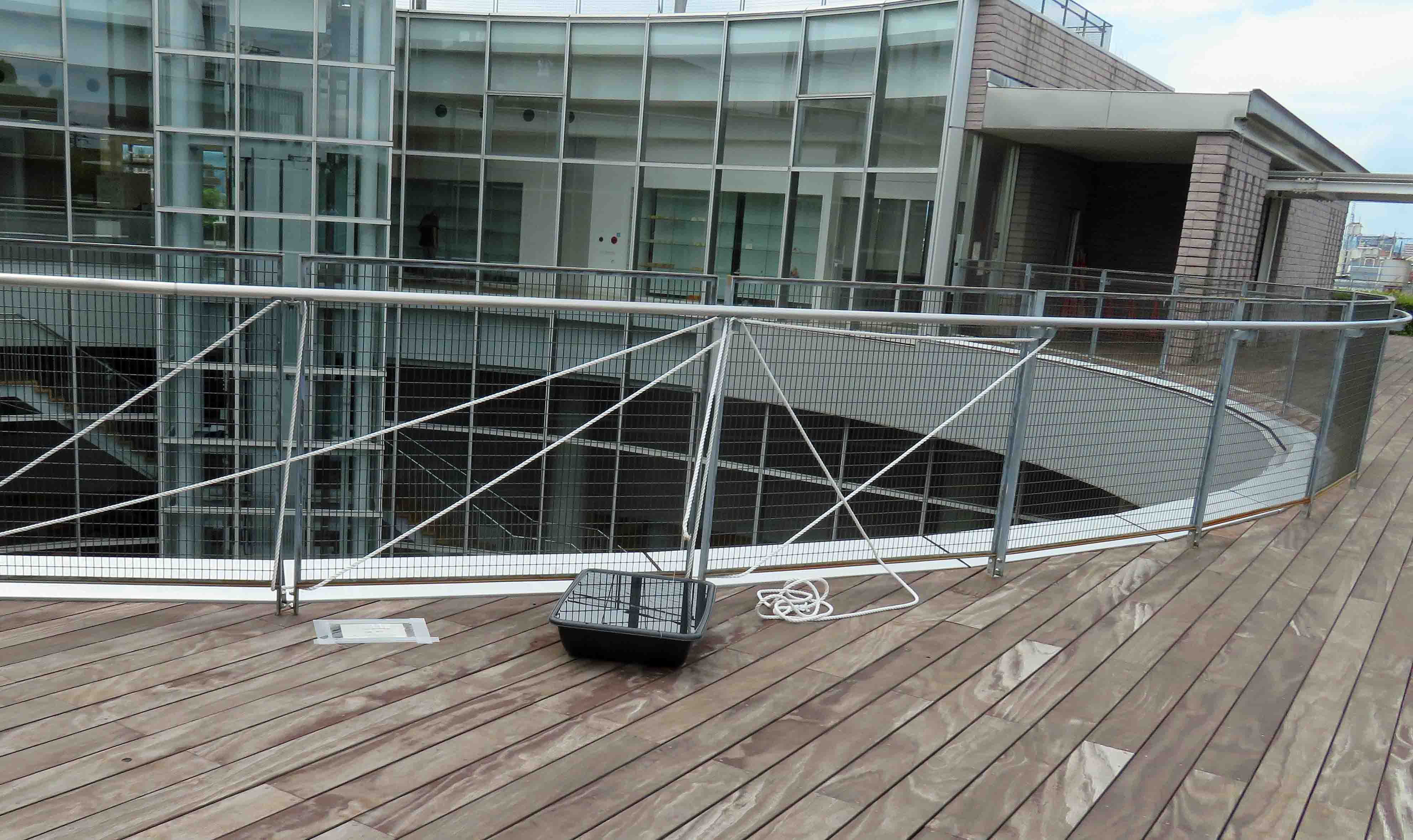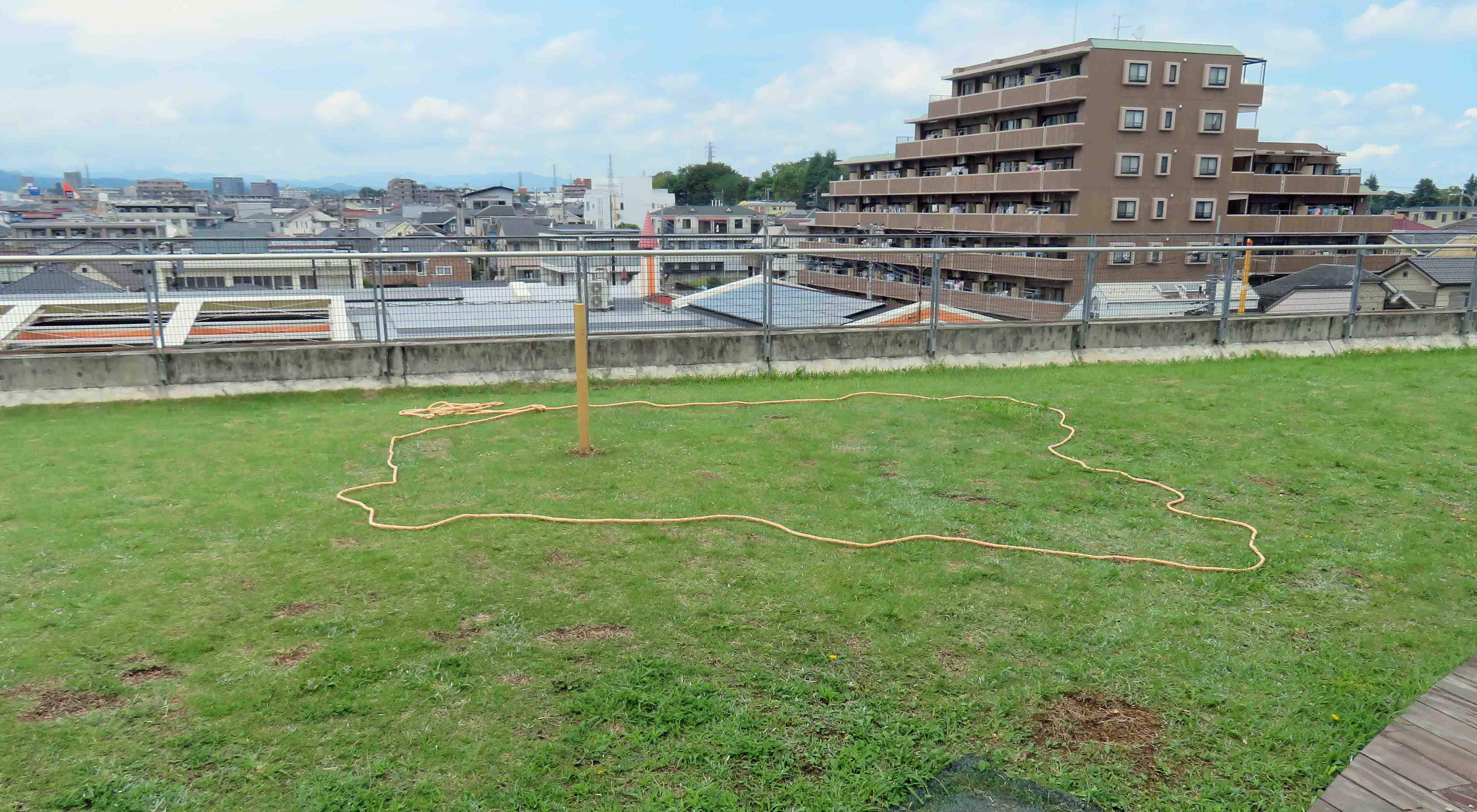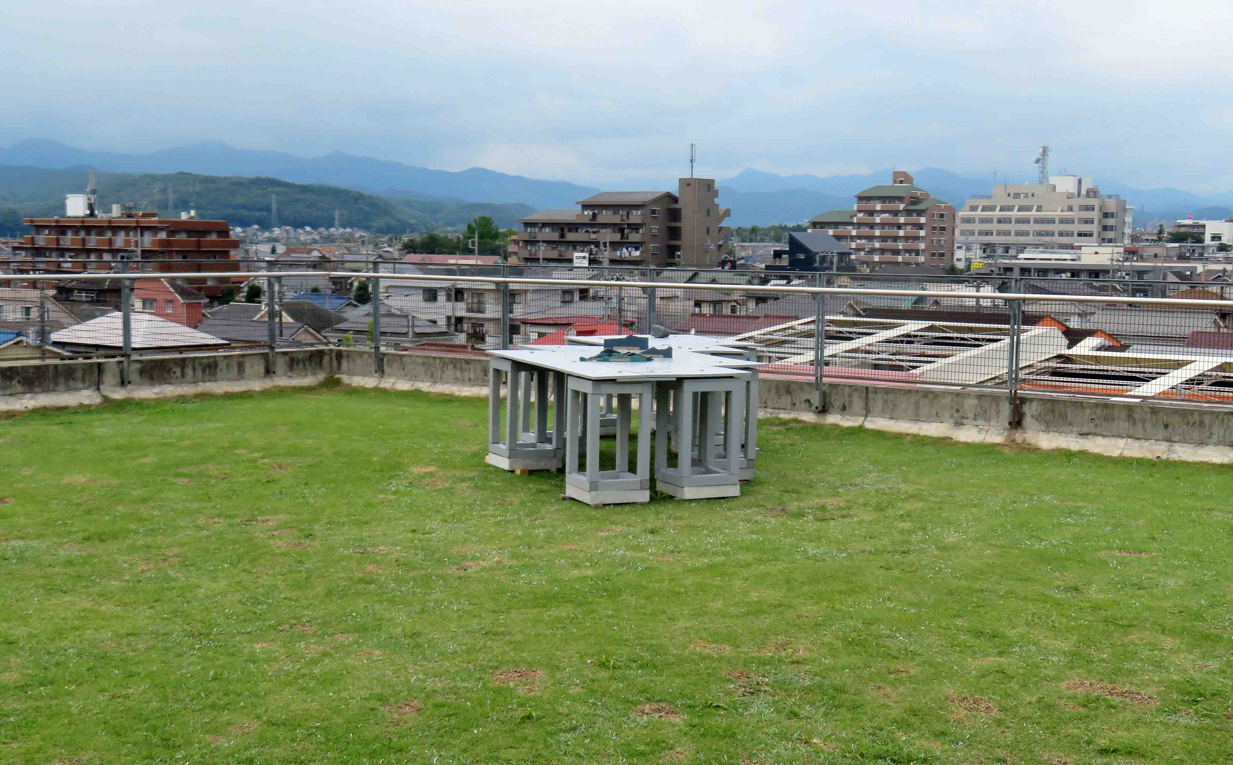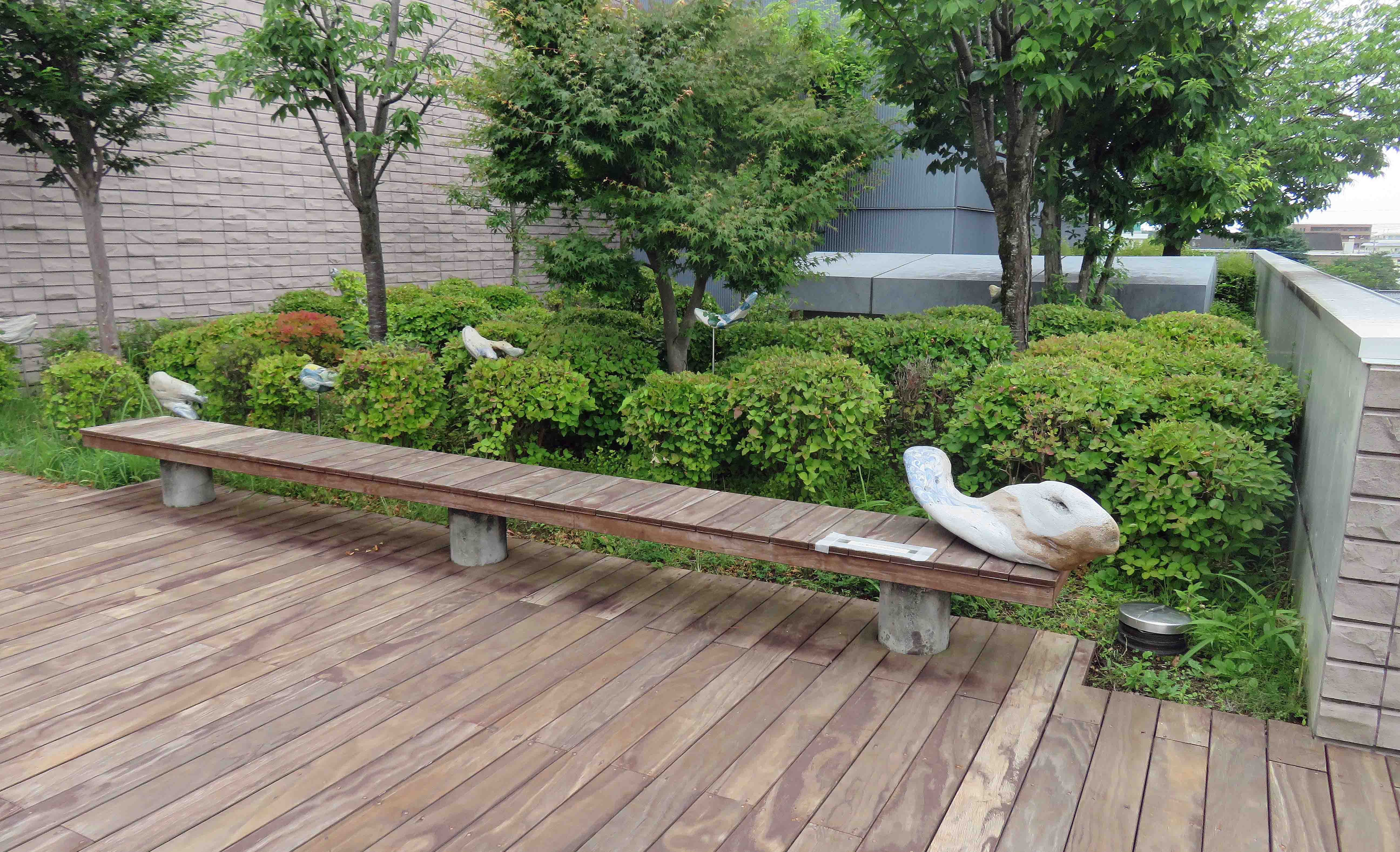 62山﨑 美樹風の音の聴こえる処欅の枝ここの屋上はとても気持ちが良いですね。 屋上の芝生の上に、座りこんで風の音を聞くための場所を作ってみました。
