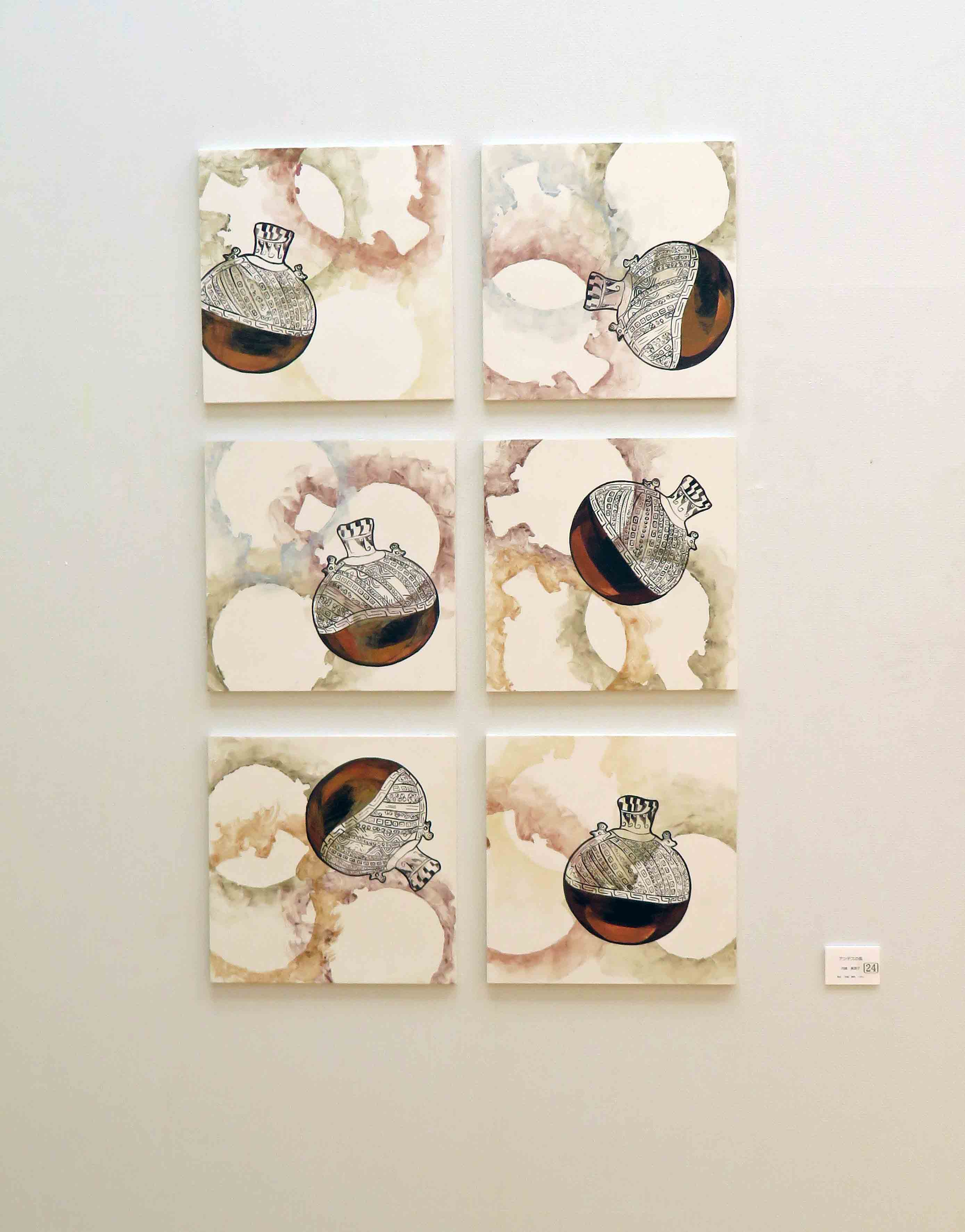 38内藤 眞理子アンデスの風和紙、顔料、パネルはるか遠くのペルーからやってきた土器。いつ頃作られたものなのだろう。なぞがいっぱい。アンデスの風が届きますように。