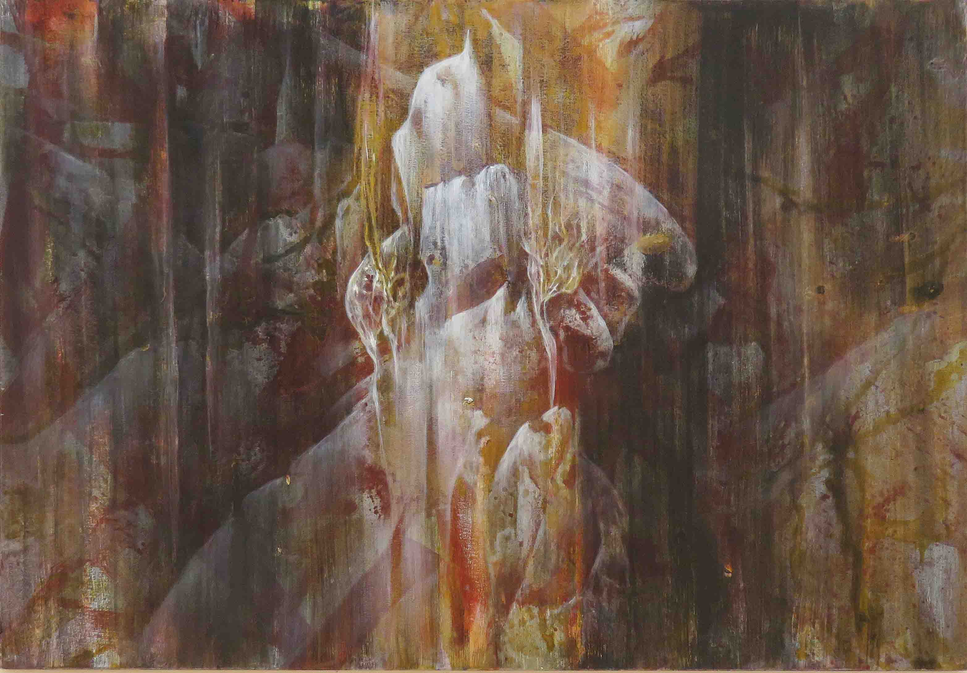 19熊田 正男WORK-G2アクリル、油彩表現は「コンセプトありき」ではない。 頭の中の想定を突き破る力はわからないところに宿っている。その〝正体〟を手探りで描き続けている。