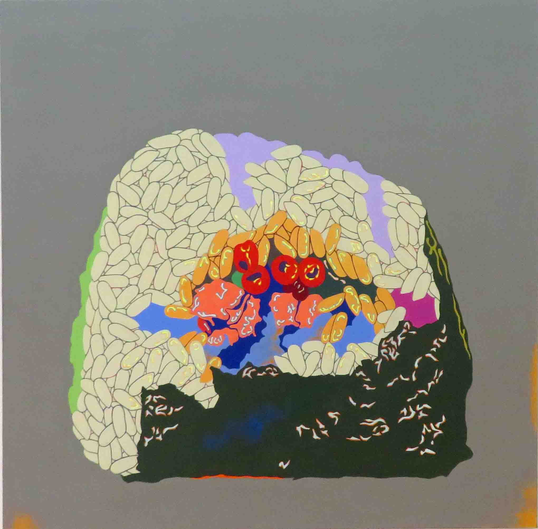 56宮下 泉おにぎりアクリル、キャンバス大量生産・消費・廃棄の象徴でコンビニ「おにぎり」を描いてます。次々と新商品がこれからも制作を継続、、、