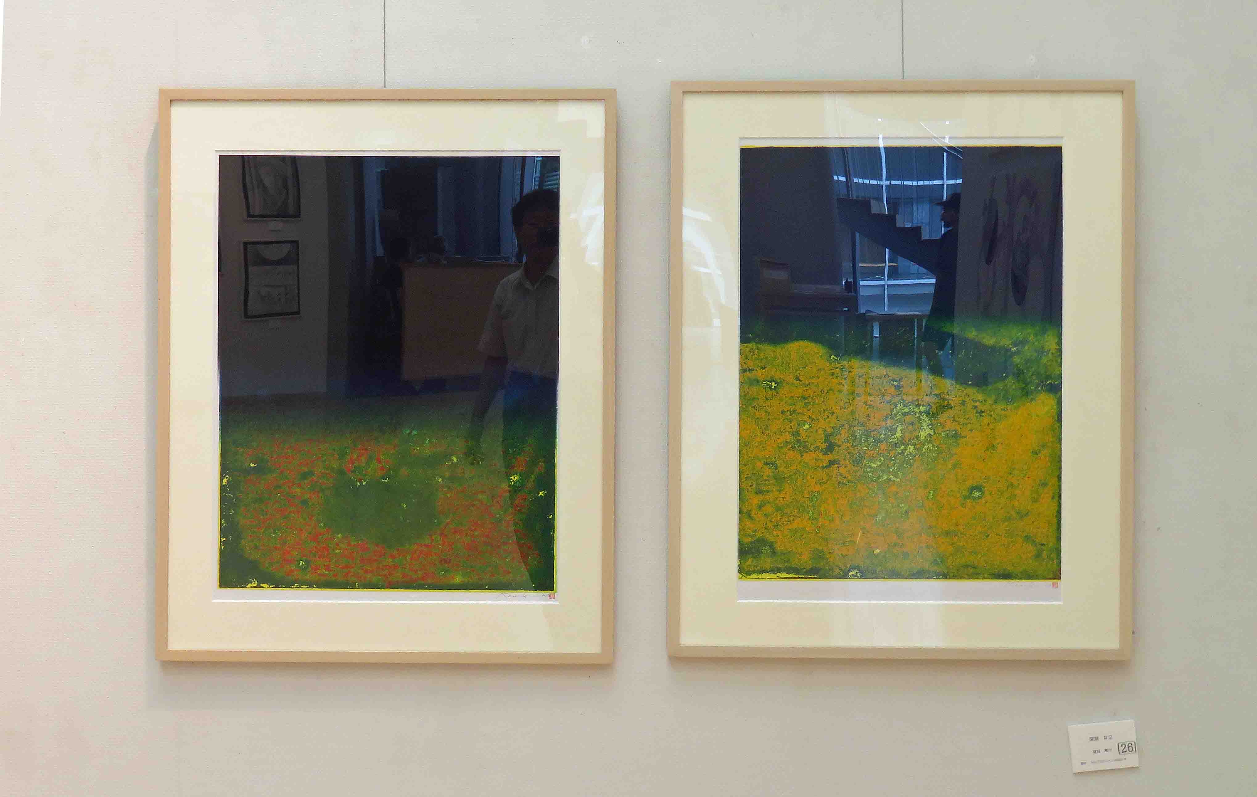 13片山 憲二樹林2408(木版)和紙、アクリル木版の技法で紙を貼ったり、切ったりしての再構築に取りくみました。版を重ねることにより、画面の重厚感を表現しました。