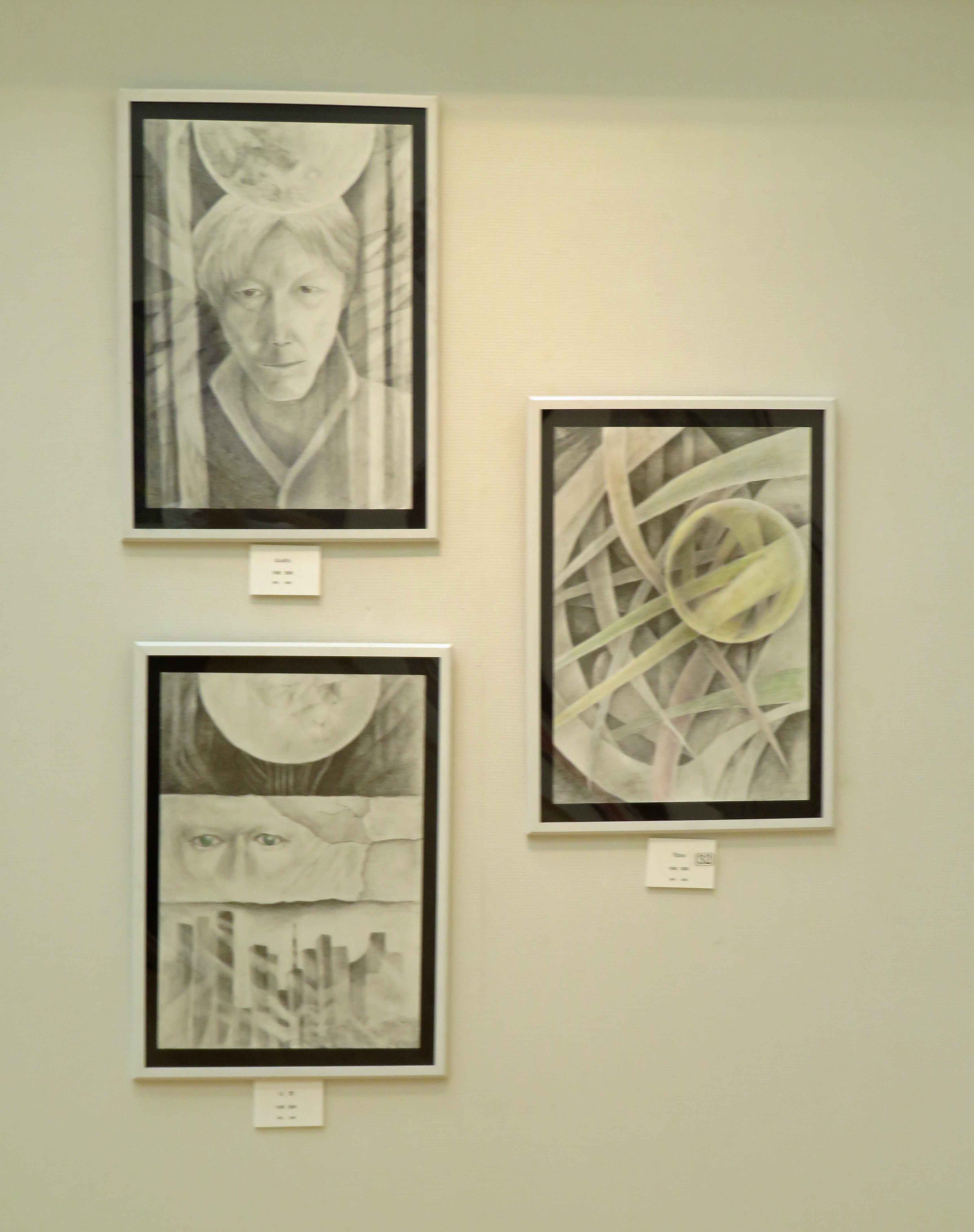 18木村 法子Mの手紙シナベニア、胡紛、水干絵具、色鉛筆ウクライナ人の母もロシア人の父も、何もかも失ったと言うマーシャの顔を描いておきたかった。最後の手紙は「Mの遺言~憎むなら戦争をする人間」