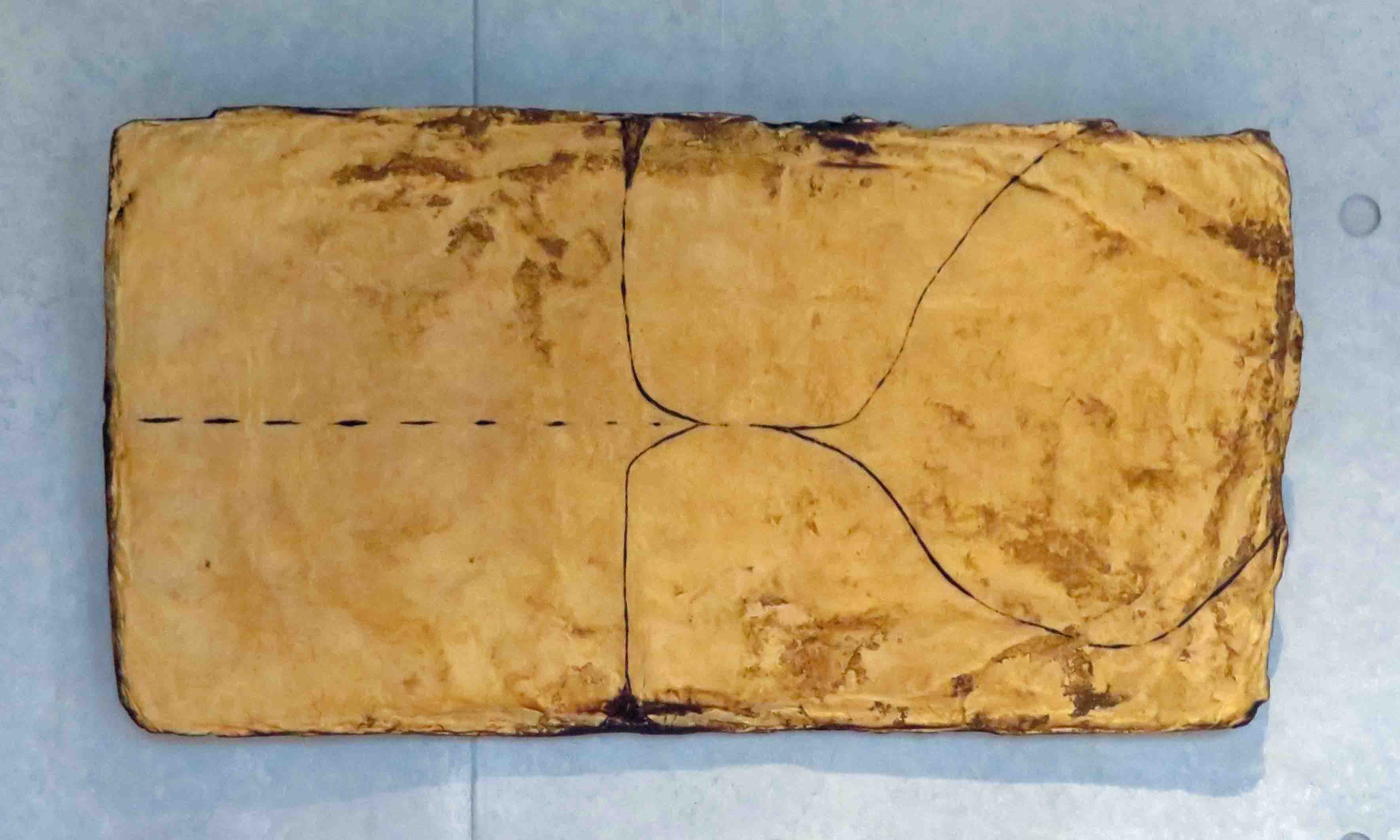 49東 裕二田園Ⅱ合板 コンクリート平板ゆとろぎの屋上から見える奥多摩の山々2万5千分の一の地図上にこの場所と山々を直線で結び山の見取図のようなものを作って見た。