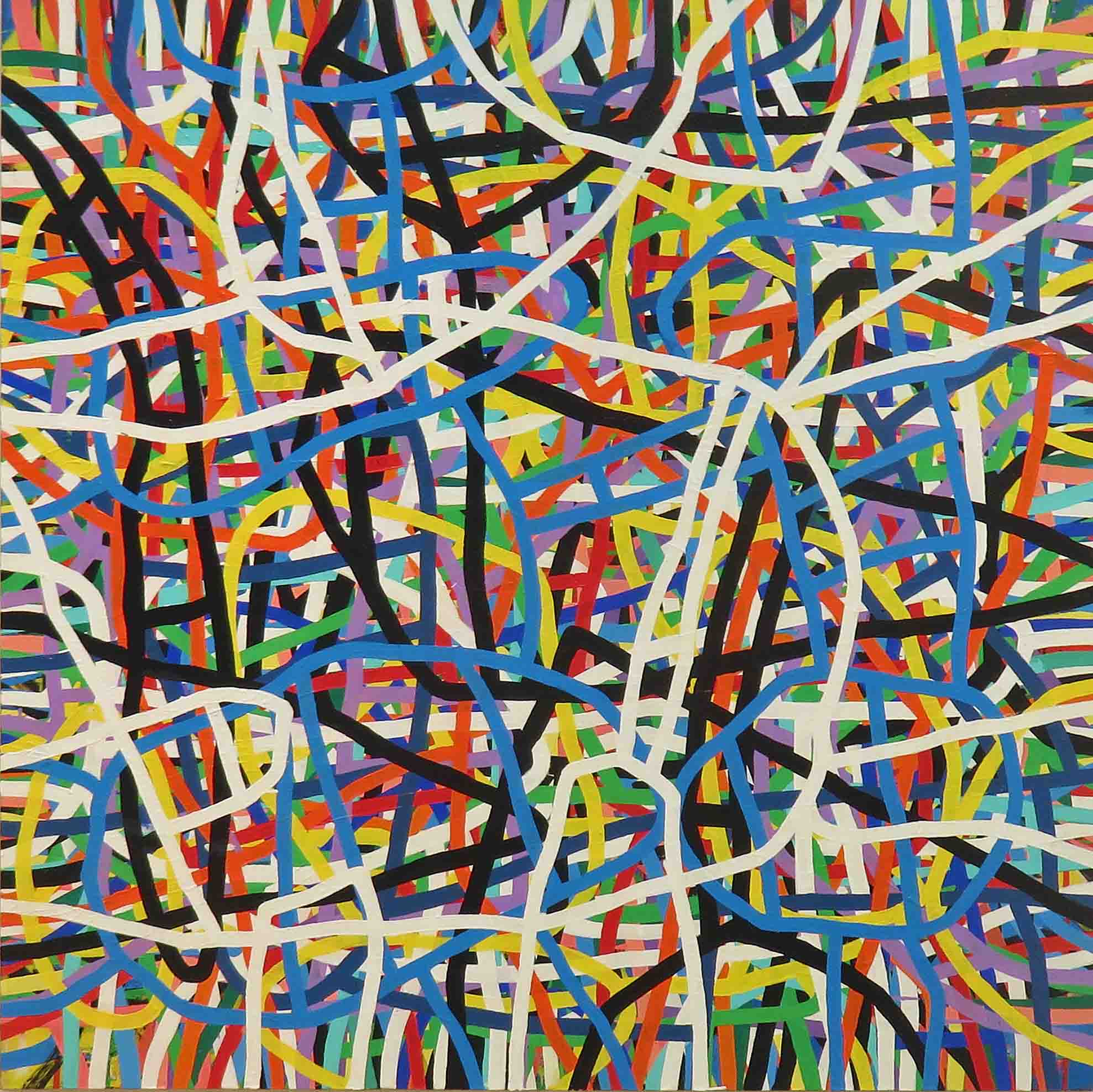 33田代 敦丕百の皮 W-BLアクリル・キャンバス 100S自由に色彩の線を繰返し重ねていきます。具体的なモチーフを表現することはありません。すき間に思いがけない表情が見えてきます。