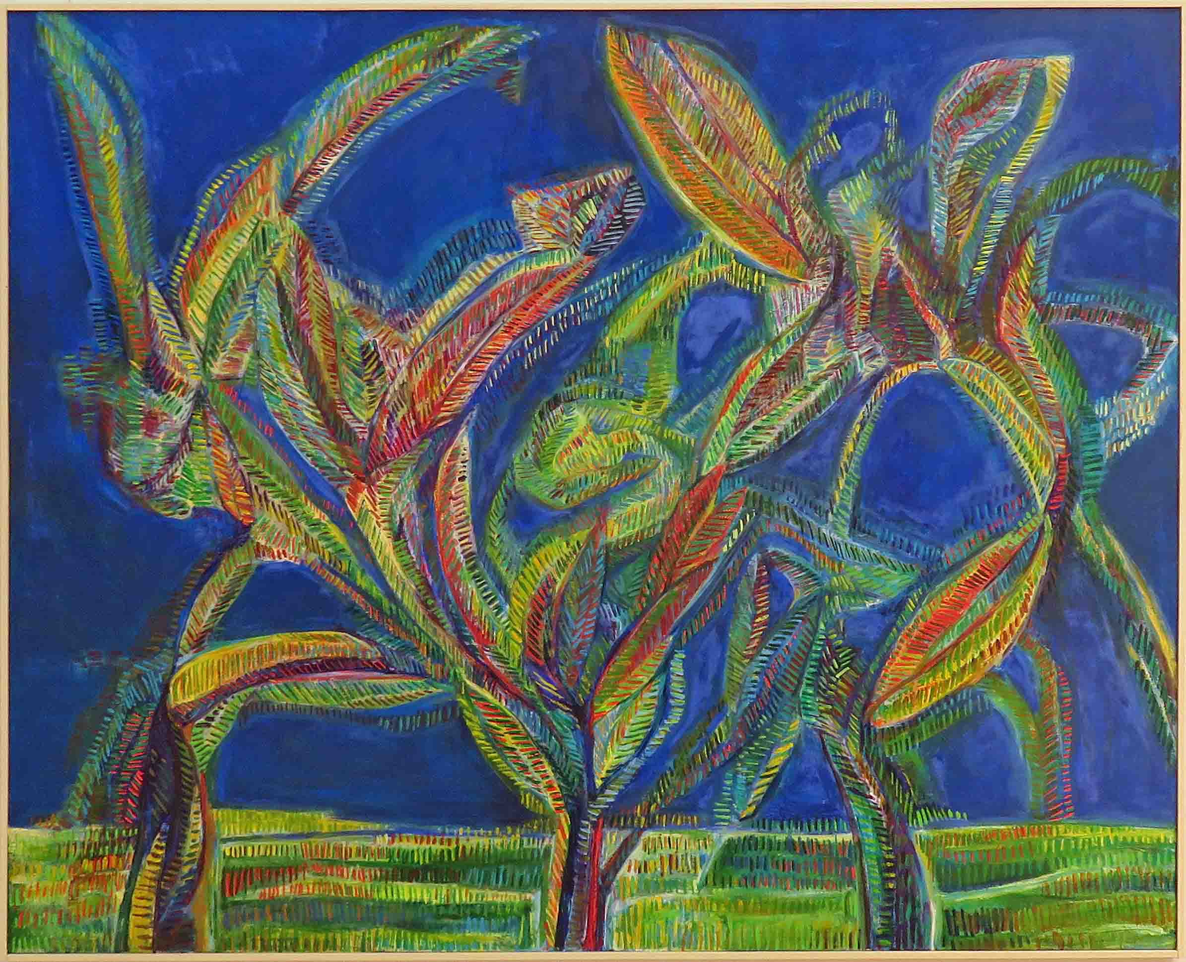21佐藤 勤巡る季節テンペラ、油彩、ミクストメディア五月には朴の樹に大きな花が咲く、樹の下からは見えないのだが微かな香りでそれとわかる。やがて花が散ると暑い日もやってくる。