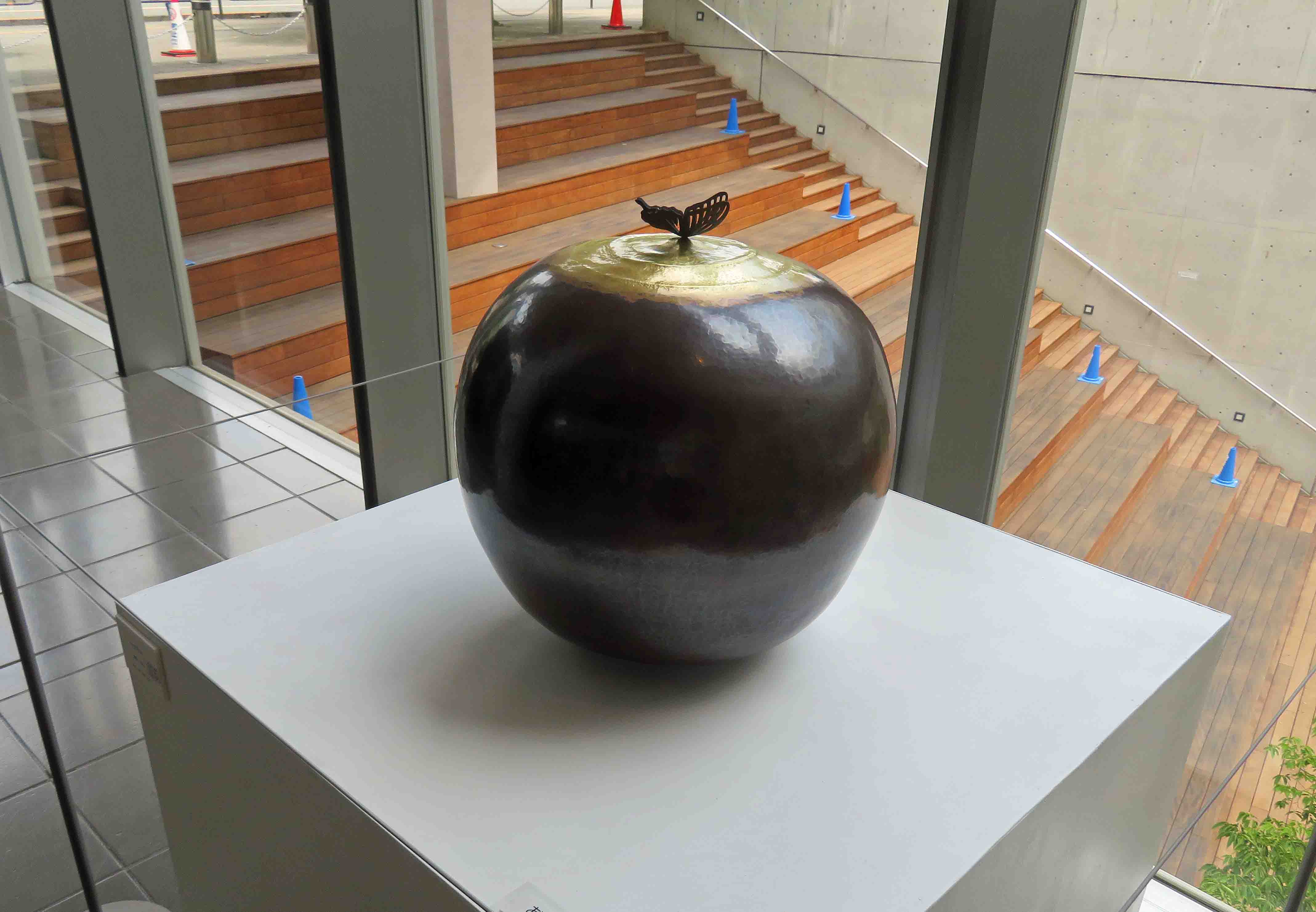 31髙野 雄生overflow銅 真鍮 赤銅金槌で銅板を叩き、制作しました。球体とクロアゲハは命のサイクルを表しています。