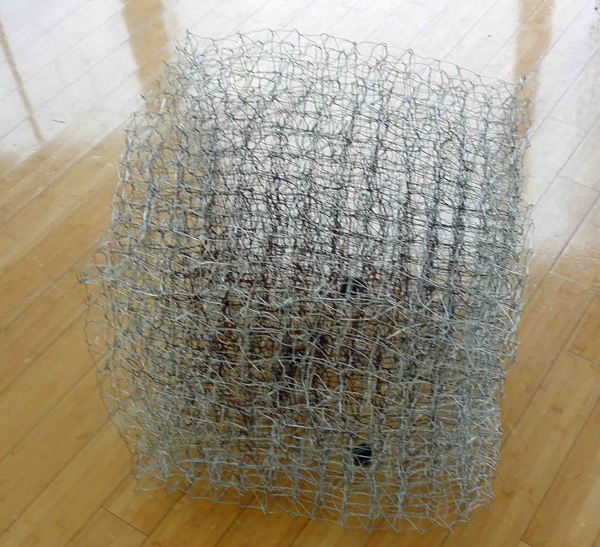 | 10 | 尾形 勝義 | Matrix ~交差する空間~ | 鉄線 | 最近人同士や人とモノの距離の感覚が変質してきている。そんな心境の中で延々と繰り返される鉄線を編む行為は、生滅をくりかえす生命の存在と重ね合わさる。 |  |