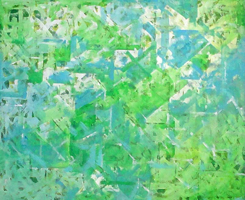 | 54 | 福井 昭雄 | 植物的世界 | アクリル キャンバス | 地球の温暖化や公害、戦乱による自然破壊は緑の森を灰色の都市化と変えた。動植物への影響は大きく、中でも植物の生成、増殖は豊かな環境を作る重要な課題である。 |  |