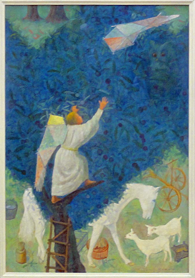 | 4 | 有田 巧 | Pastorale 20203 | フレスコ | ジョット(1267~1337年)が描いたフレスコ画の画集を見ていた時は、背景の中に小さく木に登る人が描かれているのが目にとまり、その部分を思いつくままにイメージを膨らませて描きました。 |  |