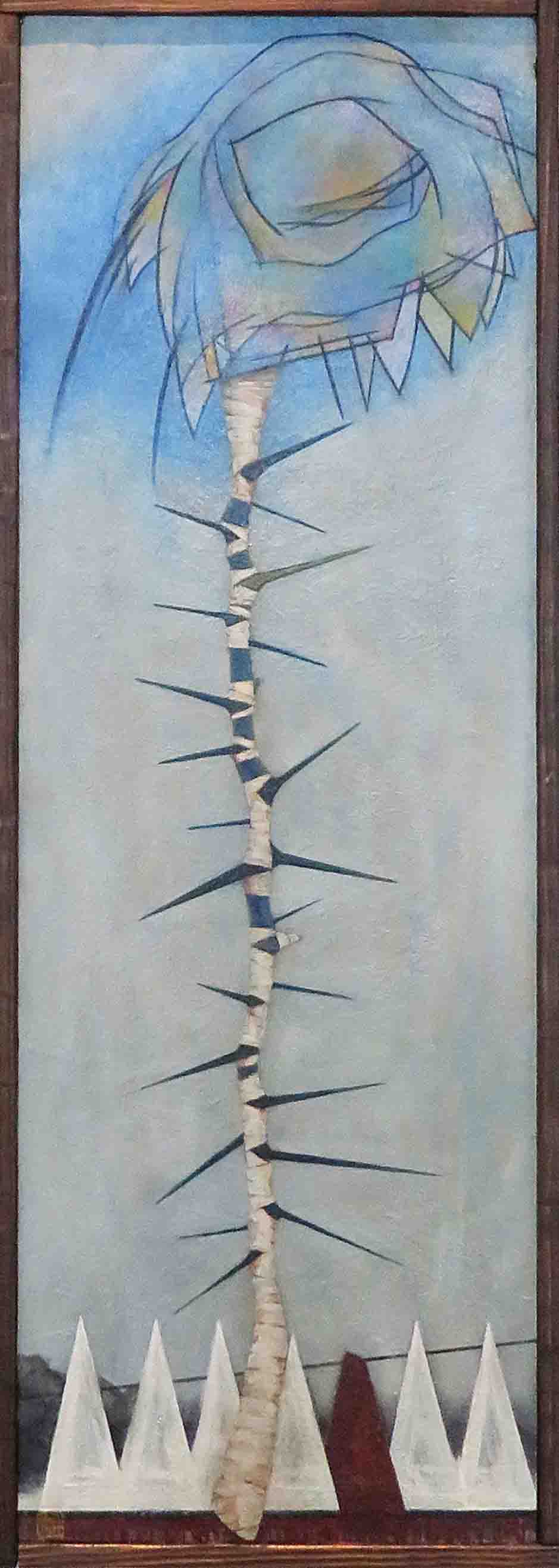 | 47 | 橋本 晴海 | 荒野に咲く | 板に油彩 | 人の存在はまるで諸刃の剣のよう。闘乱の只中に抗うかのような命が今日も芽吹く。 |  |