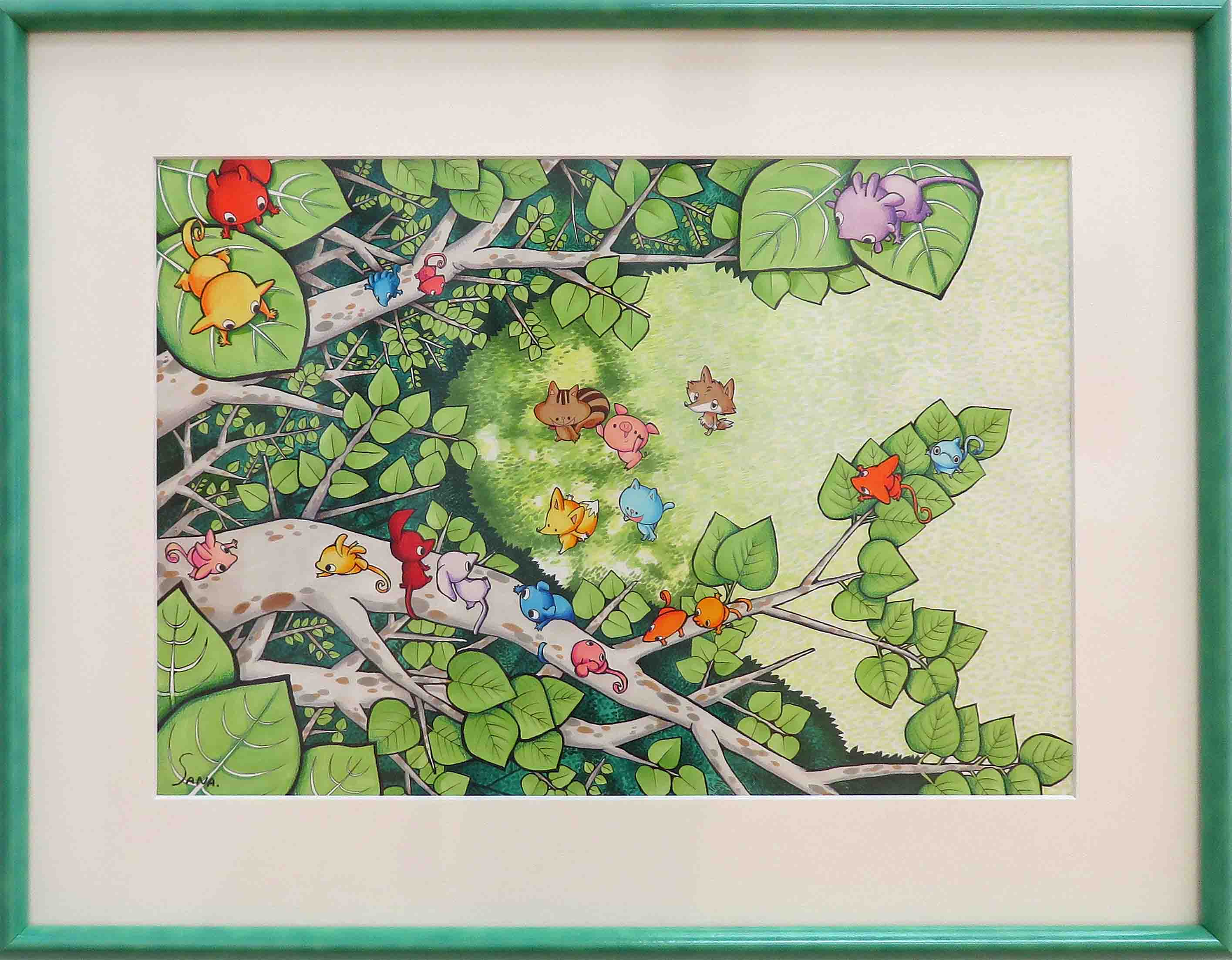 | 24 | SANA | 森の中にひっそり | カラーペン 色鉛筆 | 葉っぱには見た事のない生き物が。もしかしたら皆の目には見えない不思議な生き物が大きな木のお世話をしているかもしれないね。 |  |