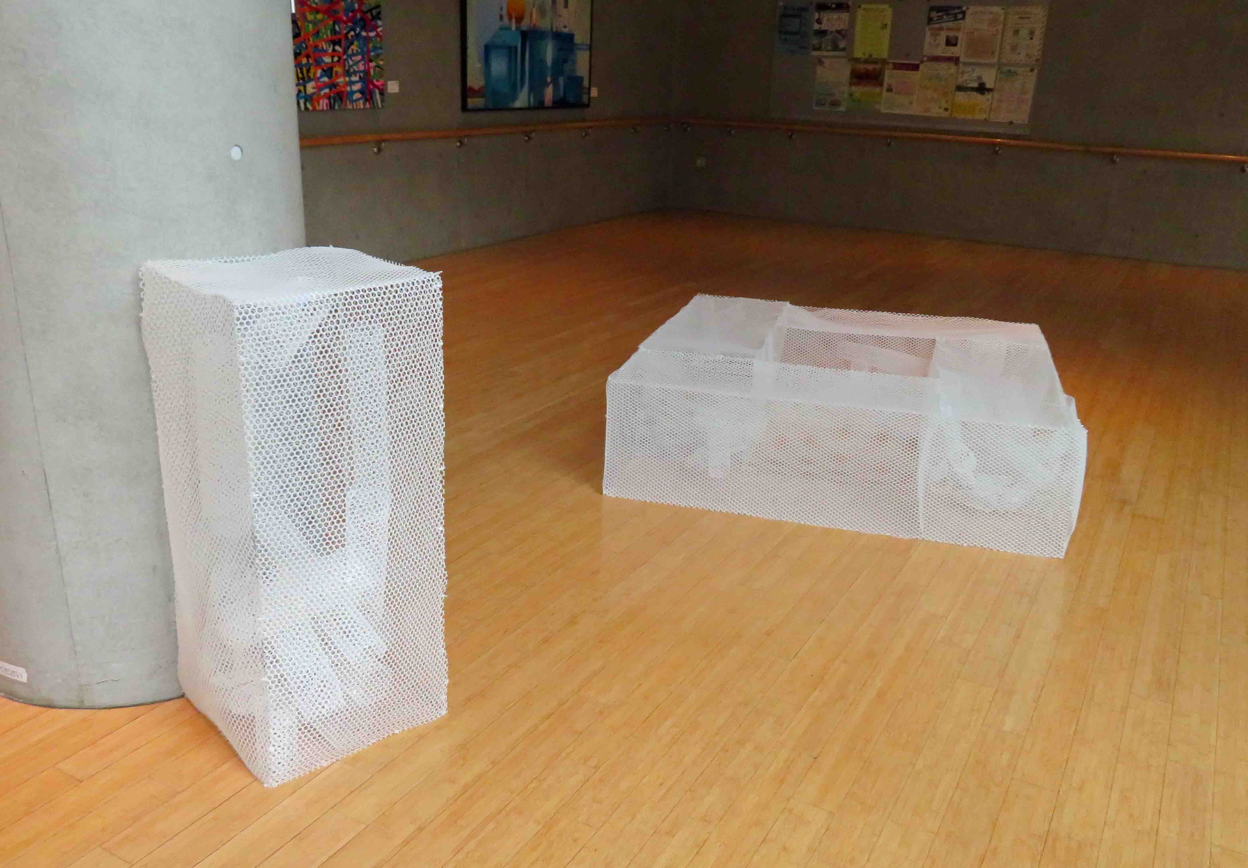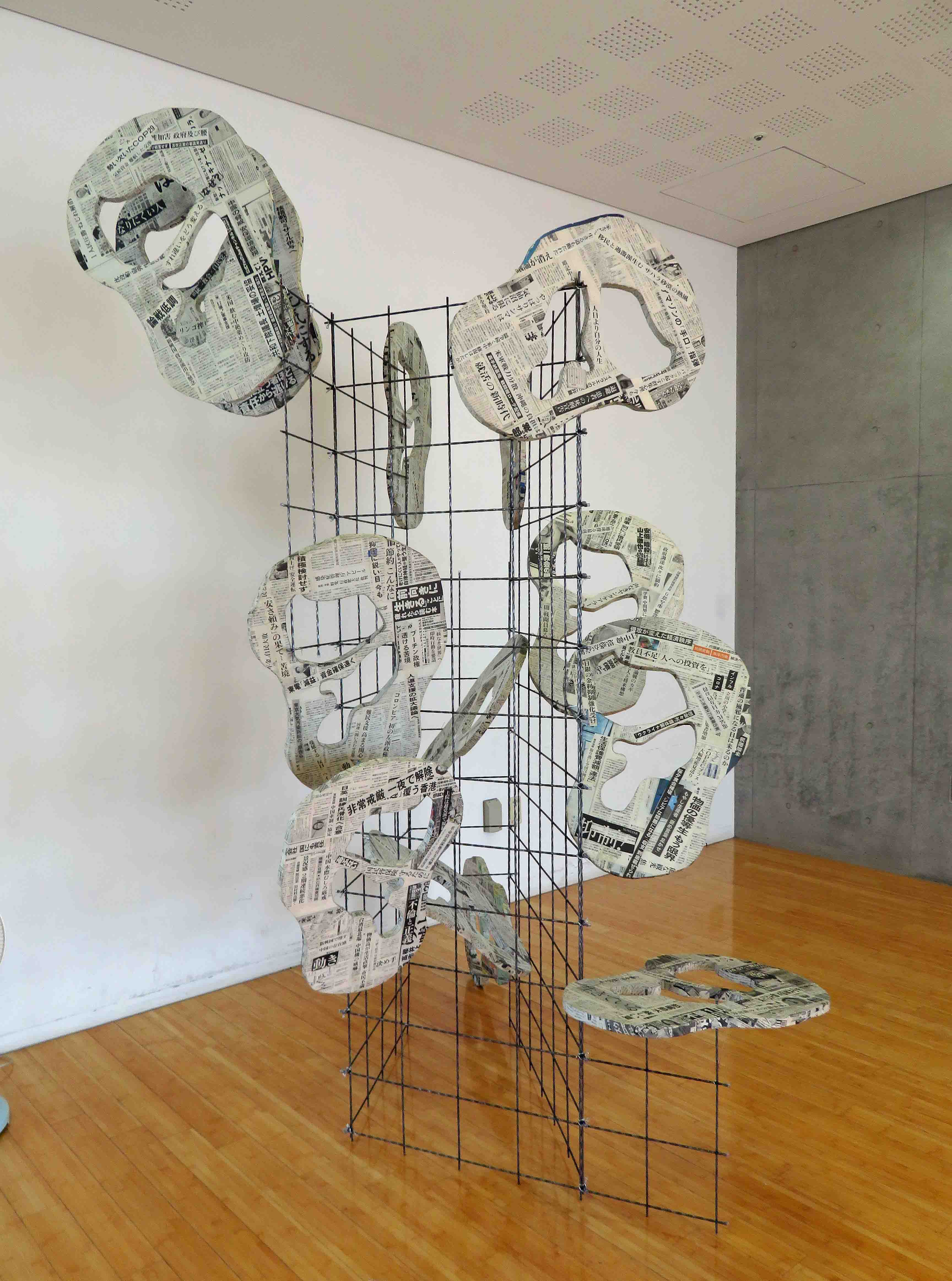 | 15 | かとう かずみ | 聞くこと 分かること | 新聞紙 ワイヤーメッシュ ウレタンフォーム 他 | 沢山の情報が入って来る。何を聞いて信じるのか、何を疑うのか。答を考える時間もないまま次の情報があふれてくる毎日。 |  |