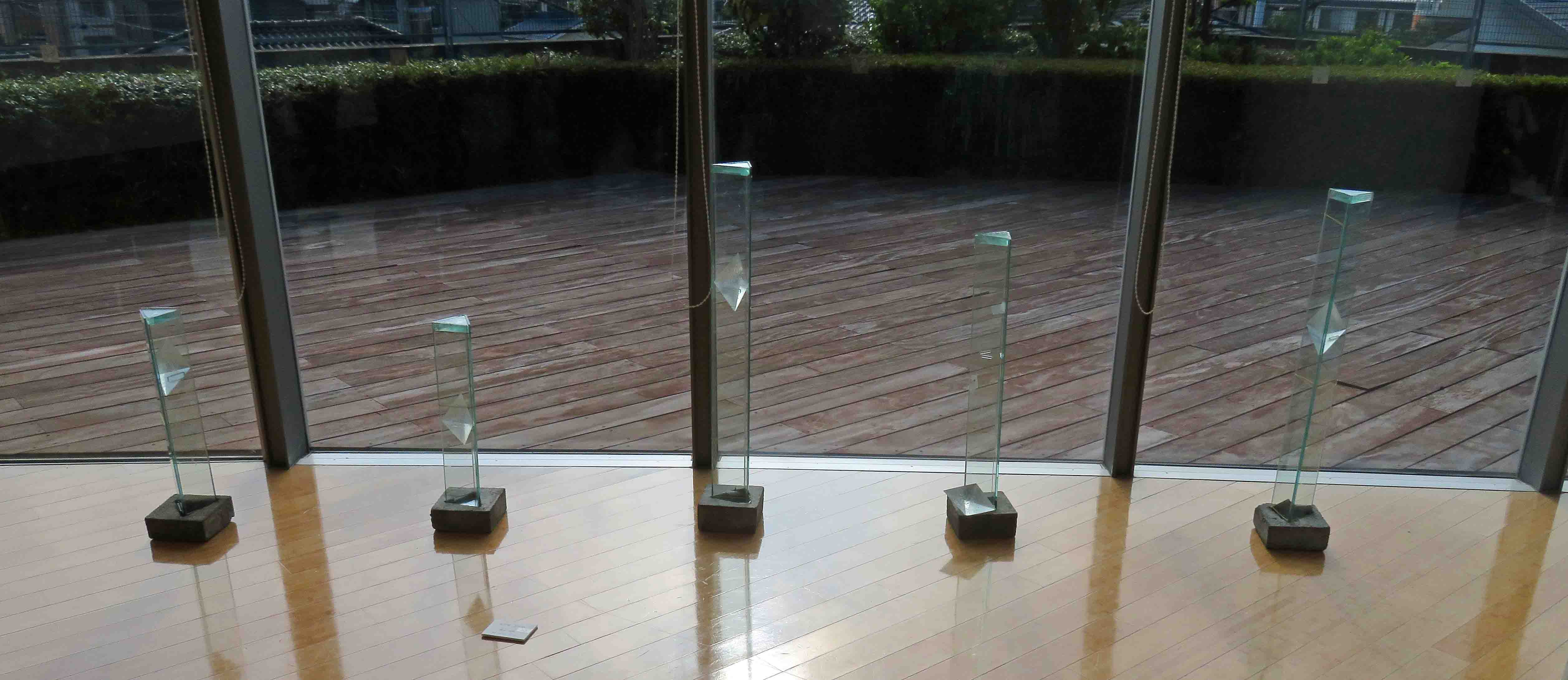 | 52 | 堀本 俊樹 | 光の素 2025 | 鋳造ガラス 板ガラス | 青い照明、さくらは咲いてひにひかり、キンキン光る。 |  |