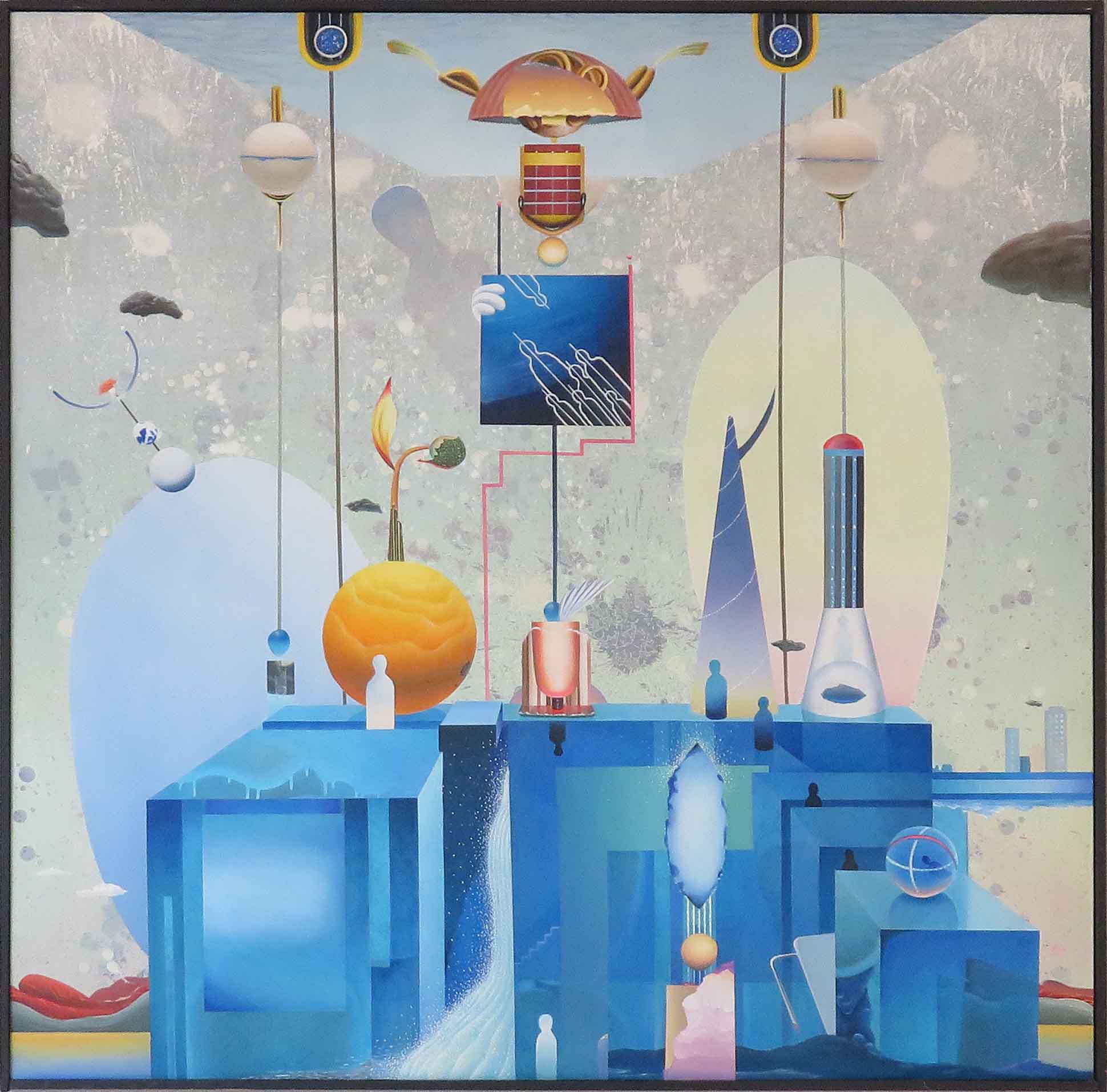 | 13 | 大野 美代子 | 改造されるヒト科 | 油彩 | AIによる人類の改造は、おそらく治療法として始まり、次に強大な視力あるものがこれで自己のバージョンアップに使う。ヒト科はここで分岐するのだろうか。 |  |