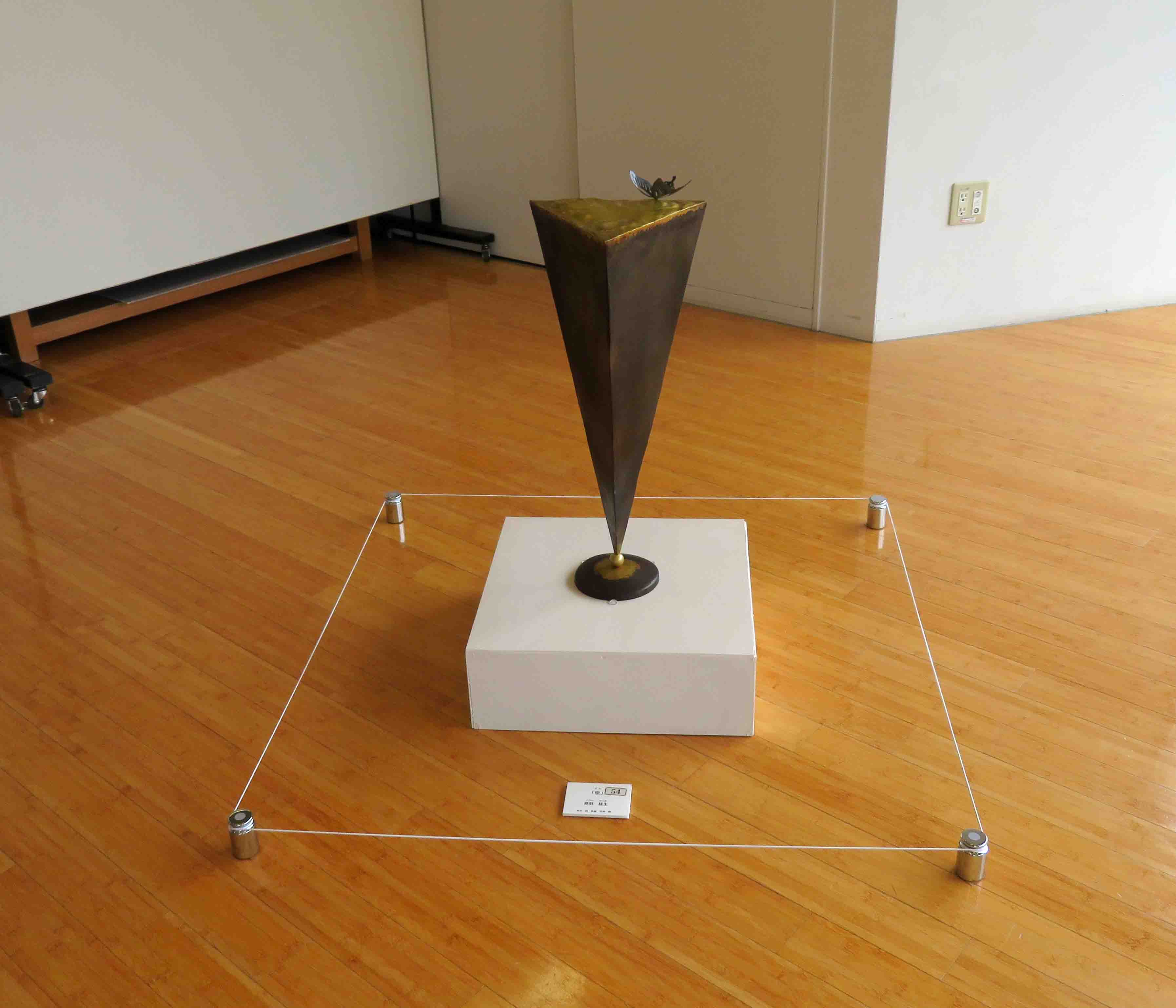 | 32 | 髙野 雄生 | せん「泉」 | 鉄 真鍮 赤銅 銅 | 鉄板と真鍮板を金づちで叩いて制作しました。生命エネルギーを水にたとえ、クロアゲハの蝶が生命エネルギーから生まれる様子を表しています。 |  |